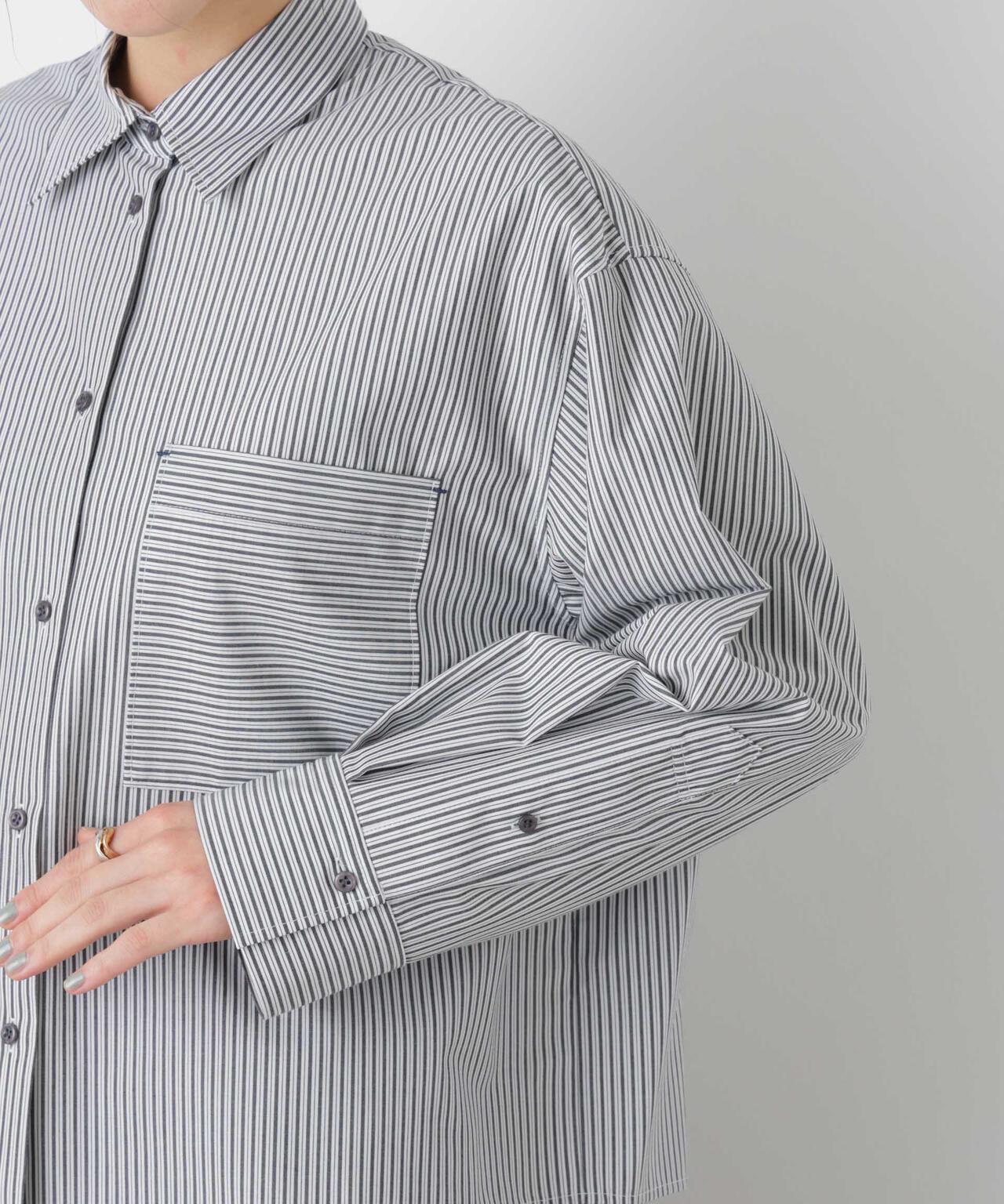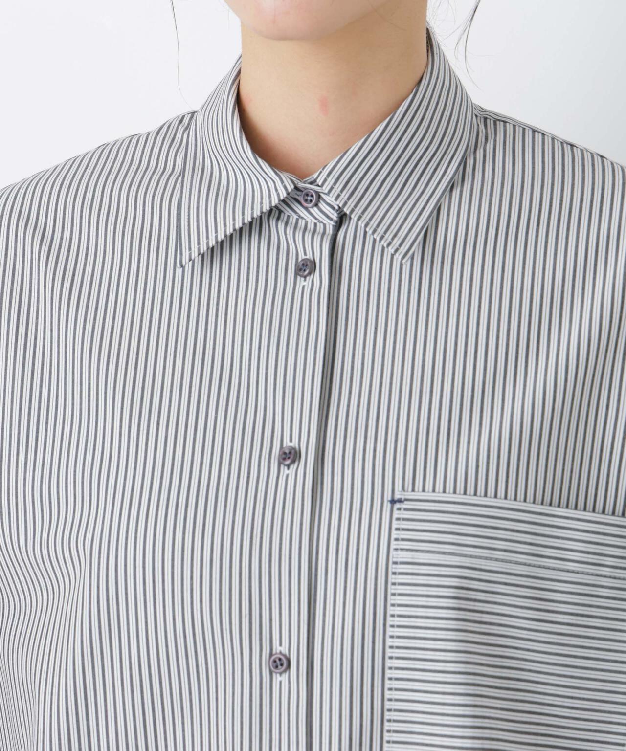 身体から離れるボックスシルエットとすっきりした短い着丈バランスがポイントのレギュラーカラーシャツ。高密度でハリがありつつ、程よく柔らかさと軽さも備えたクリーンな印象の素材で仕立てた一着。配色ステッチやカラーを効かせた釦など、シンプルな中に加えた視線を引くディティールもポイントです。