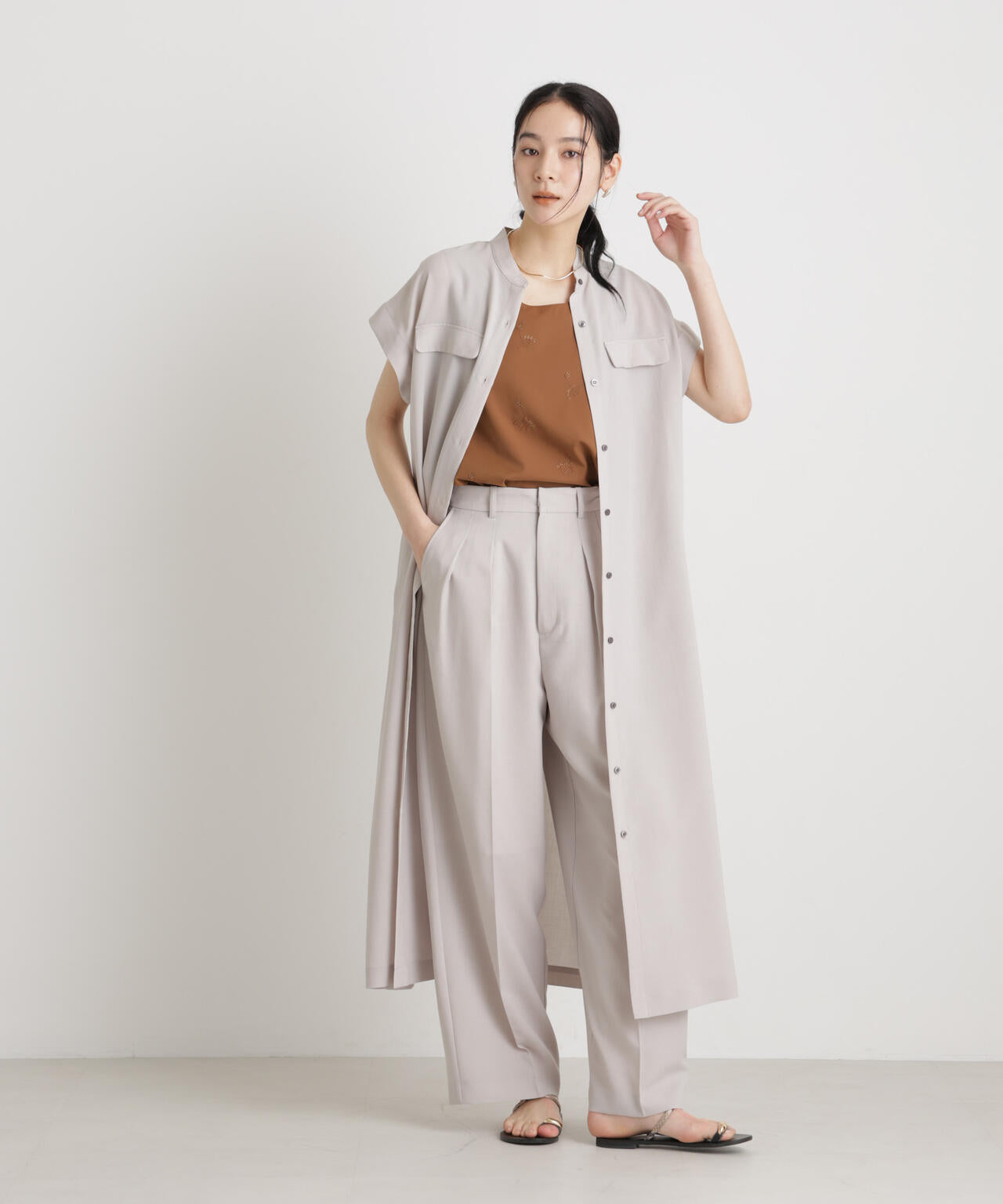 ・とろんとしたドレープ感もポイントになる落ち感がある素材