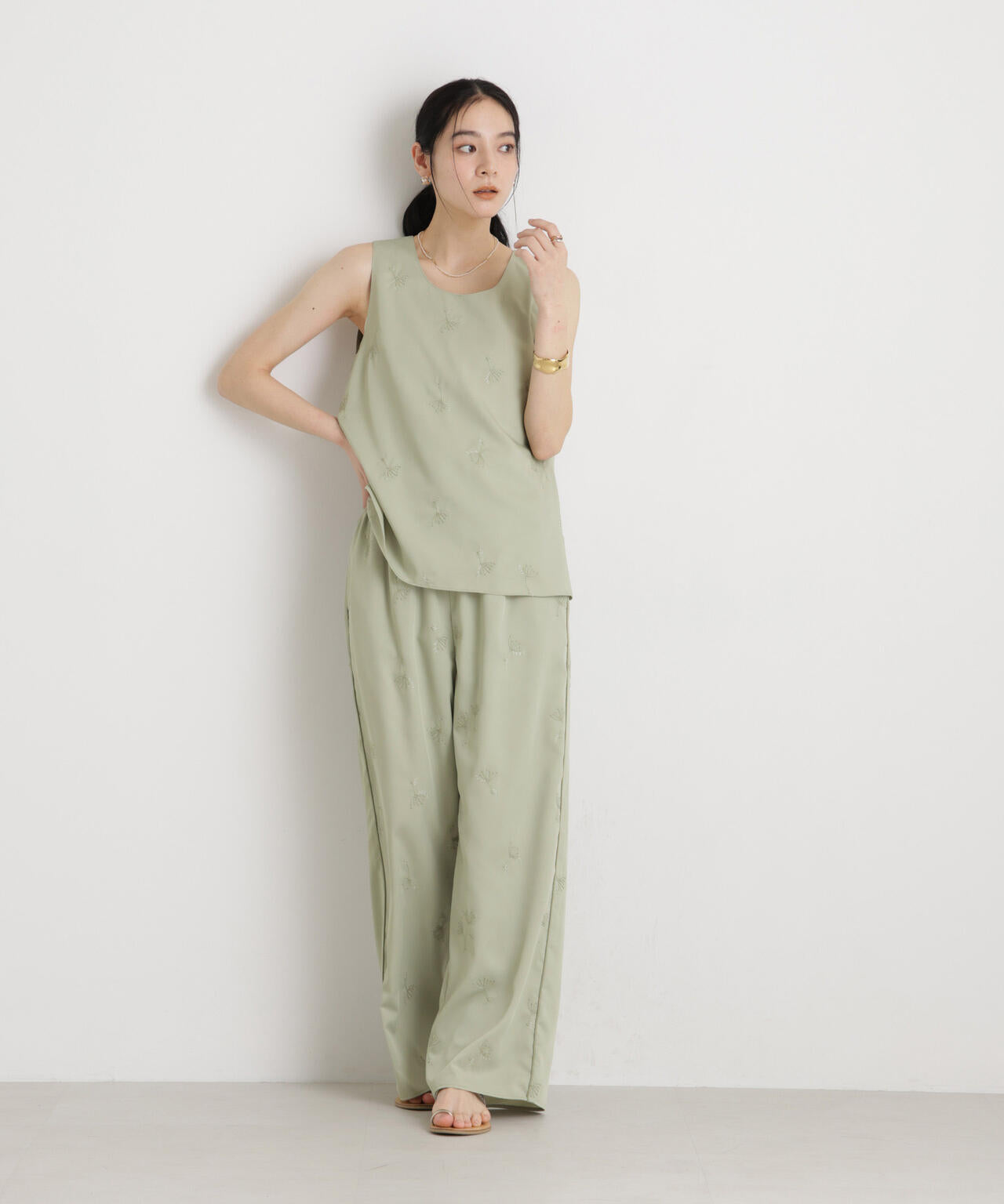 ・6696127316 刺繍ツイルイージーワイドパンツ(セットアップ可)