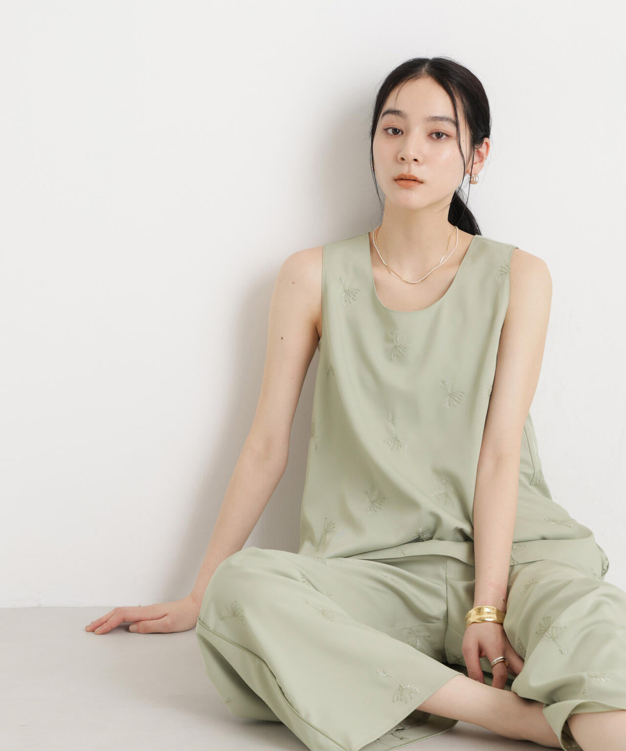 ・大人っぽく無地柄に近い見え方の刺繍なので、ジャケットインにもおすすめ
