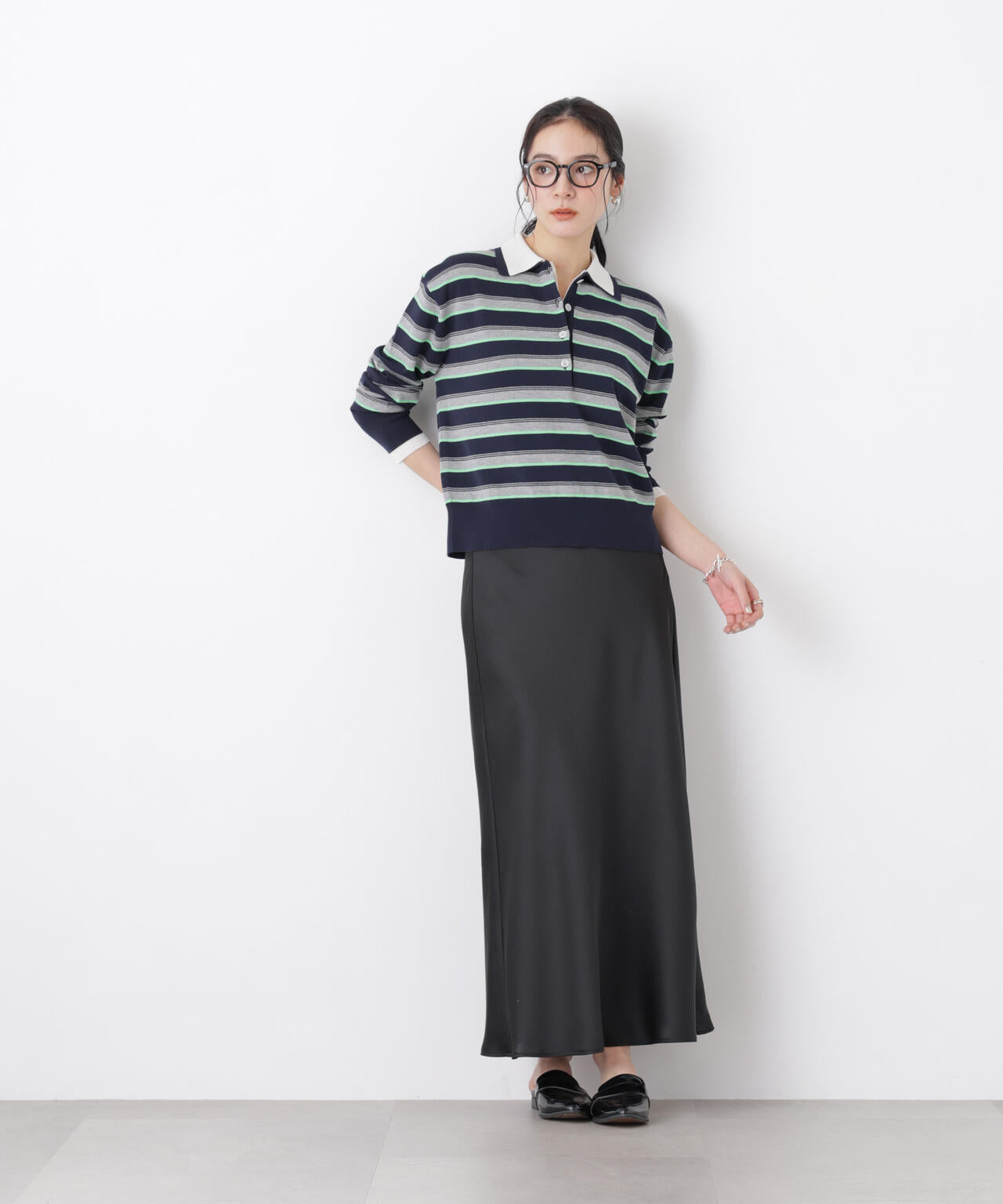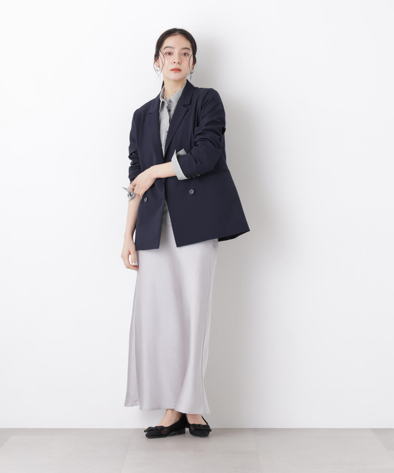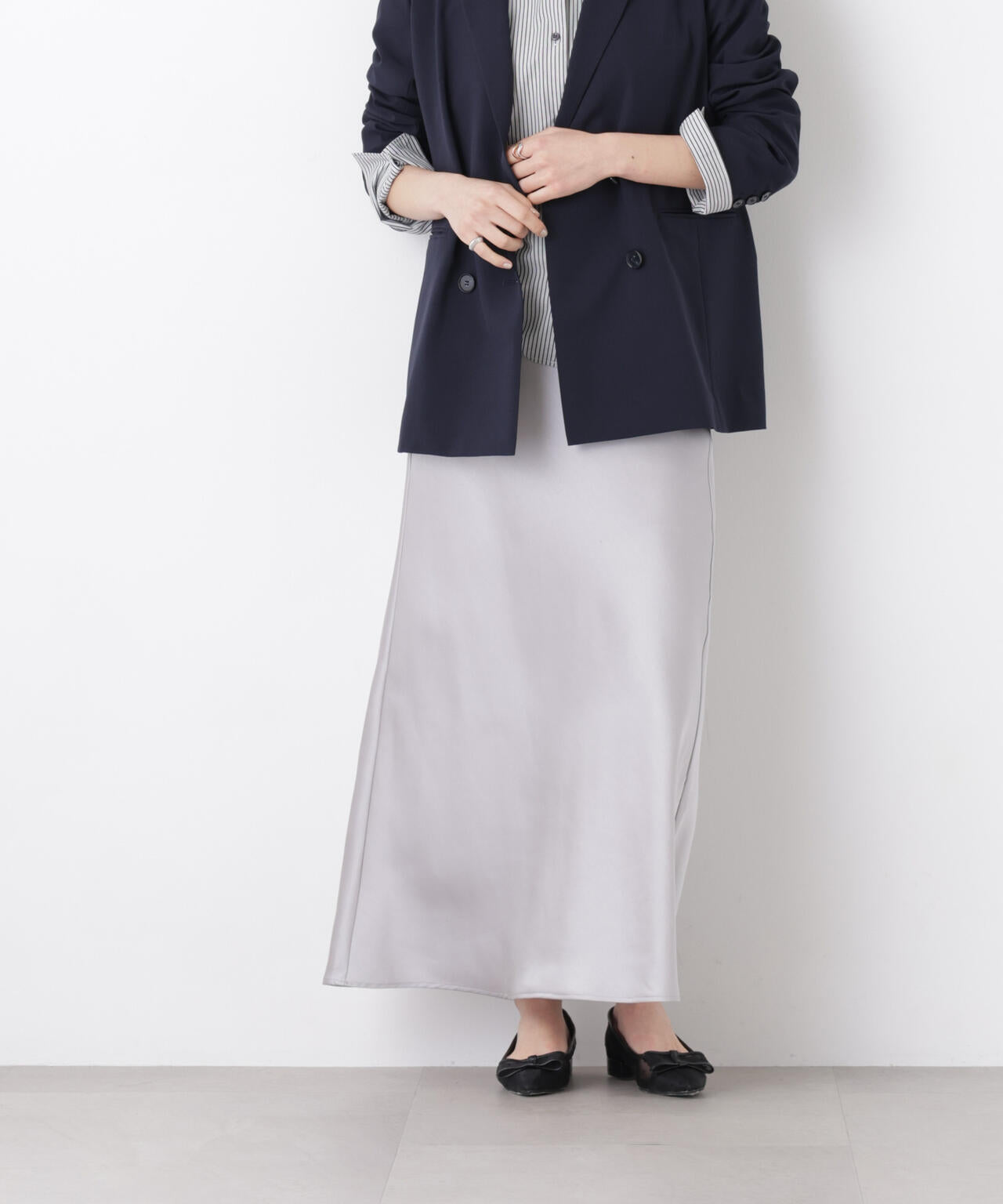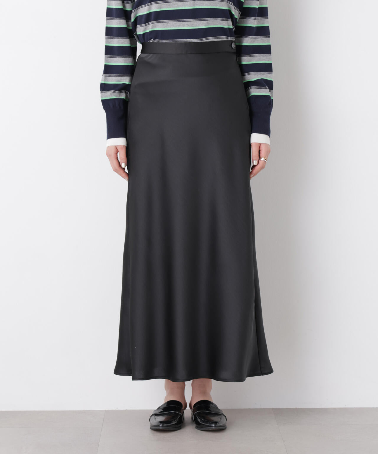 サテンの上品な光沢が魅力のシンプルで万能なナロースカート