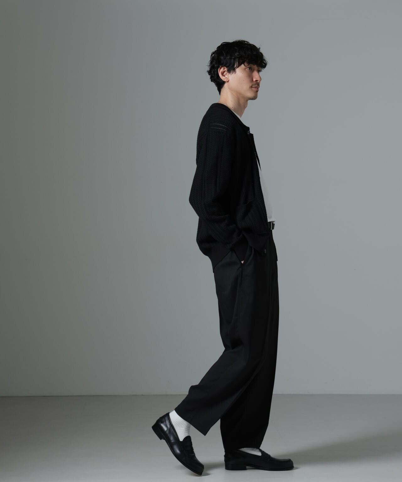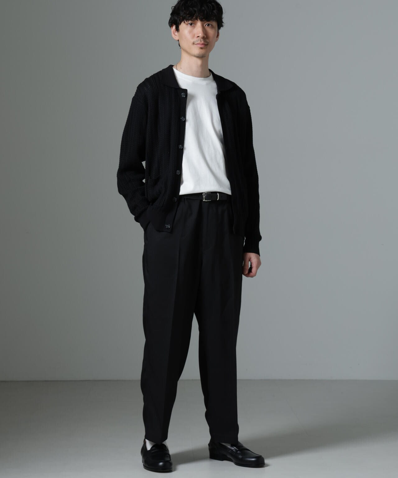 Dickies別注で好評の方はそのままに、生地・ディティールをスラックスライクにアップデートしたワイドテーパードパンツ。ビジネスウェアでもありファッションとしての要素も注ぎ込んだ1本です。