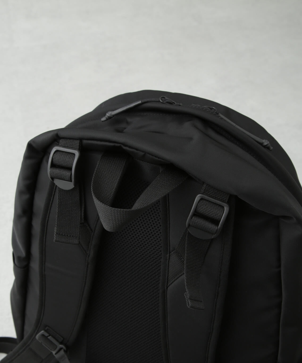 随所に取り入れた機能性の高さに、艶のあるナイロン素材でクラス感を出したバックパック。バックパックのカジュアルさを抑えた大人スタイルに馴染むシックな印象のデイパックです。