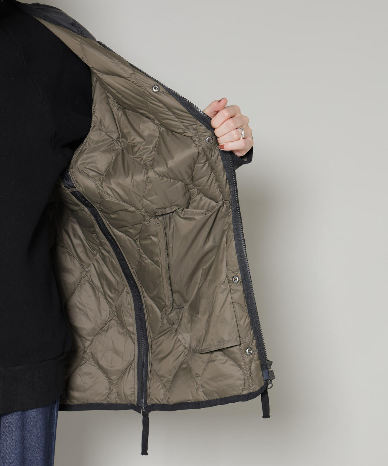 着心地を重視したゆったりサイズのM-65ライナーダウンジャケット。ヘチマキルトのダウンステッチがミリタリー感を演出。ルーズなシルエットで今っぽい着こなしが叶う一着です。