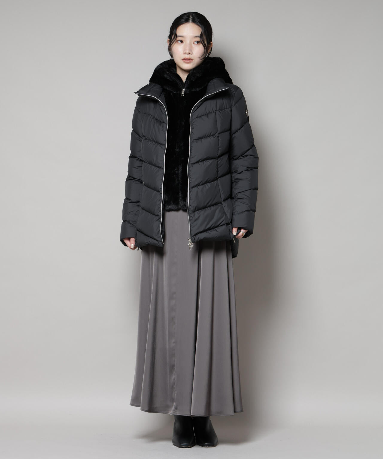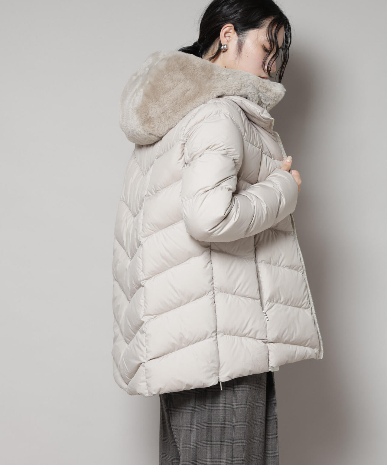 フェイクファーのフードとビブが女性らしく見た目もあたたかなダウンジャケット。取り外し可能なフェイクファーのフードとビブ、サイドファスナーで、シーンや好みに合わせてスタイルのカスタマイズも可能。-10℃までの防寒性、撥水性を備えた機能素材が、都会の日常から冬の季節まで、あらゆるシーンで快適な着心地を叶えてくれます。