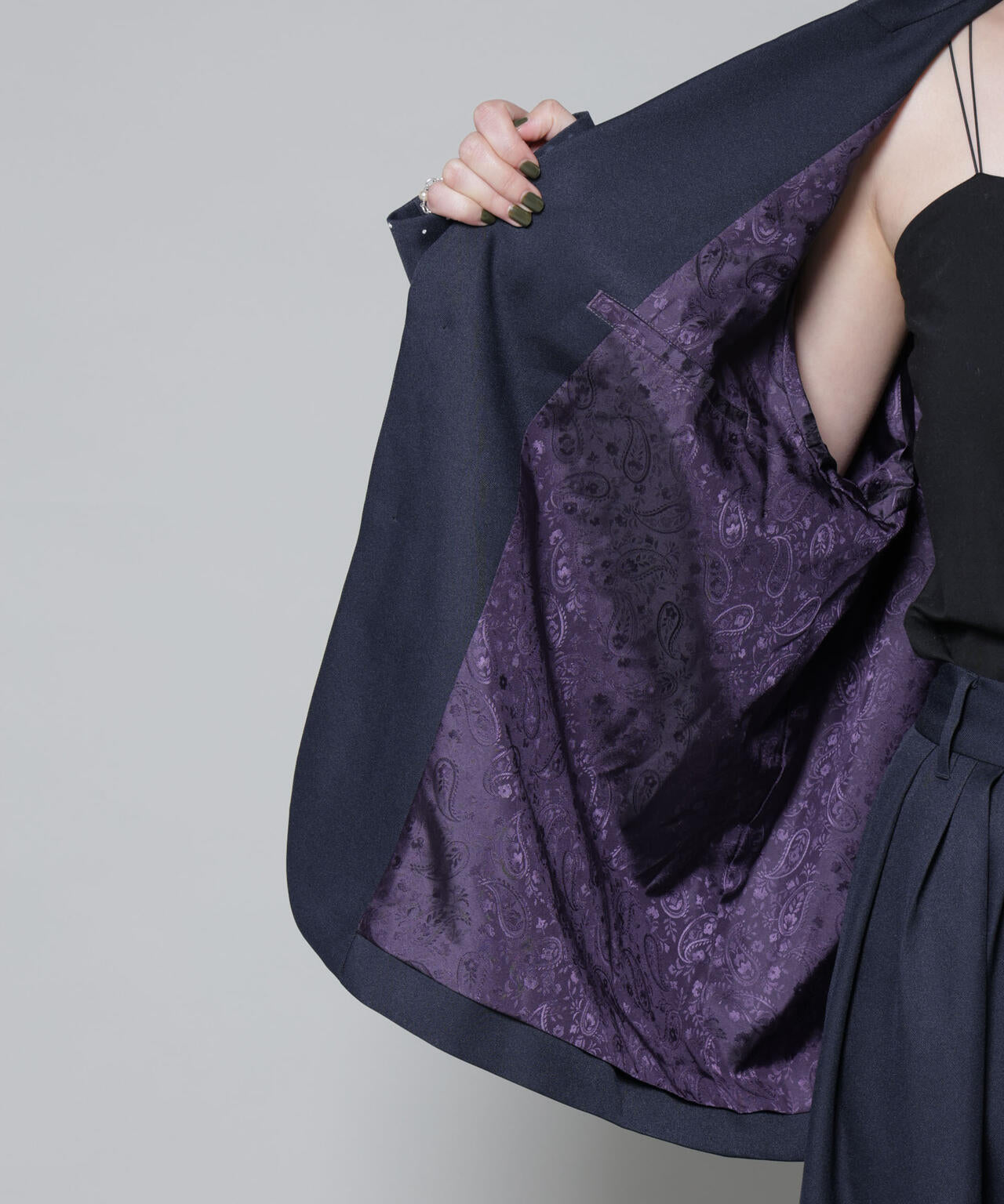 しっかりとしたツイル素材に、アートのように施されたペイント風プリントが印象的なオーバーサイズジャケット。デイリーにはもちろん、ちょっとしたお出かけやアートイベントなどにも映える一着です。