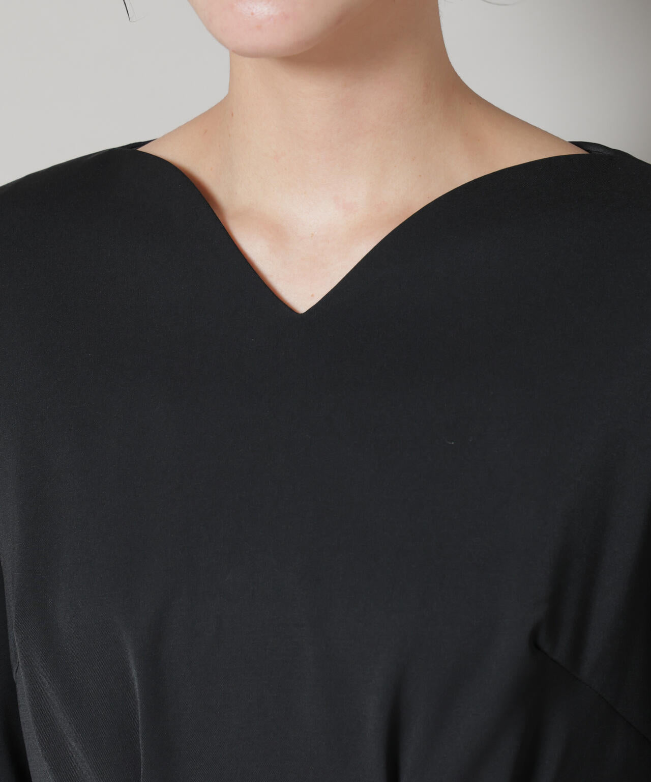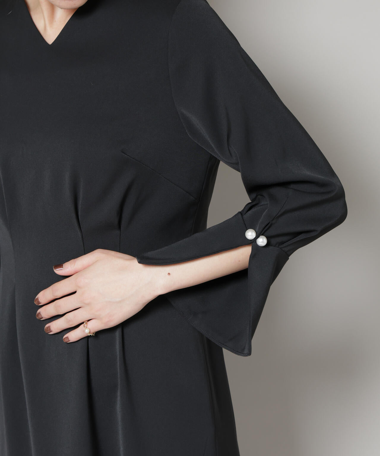 袖口の1粒パールが華やかなアクセントを効かせるワンピース