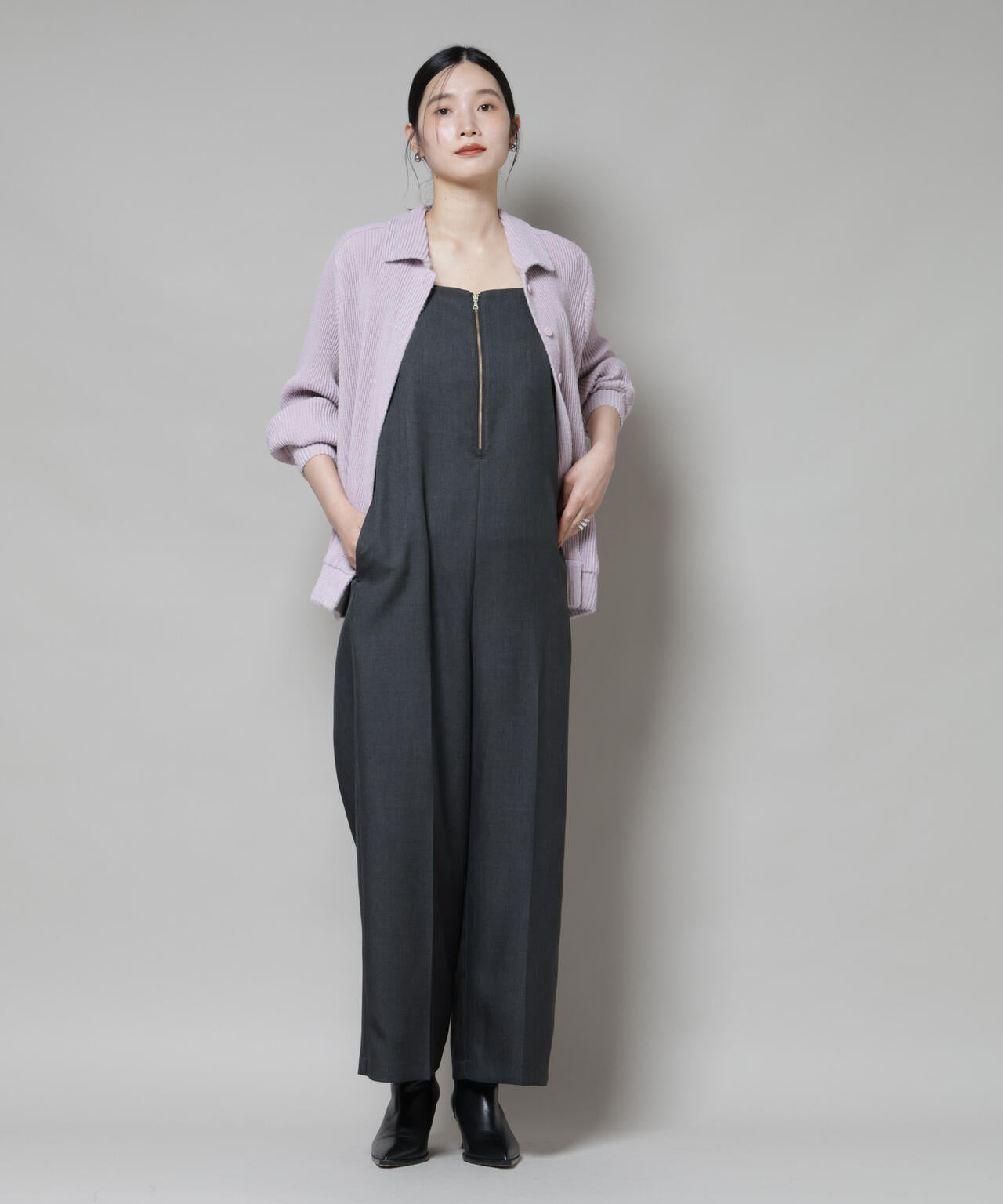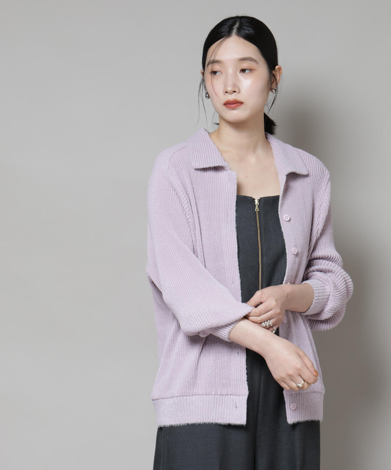 前を閉じてトップス風に、開けて羽織りとして、幅広いスタイリングに対応◎