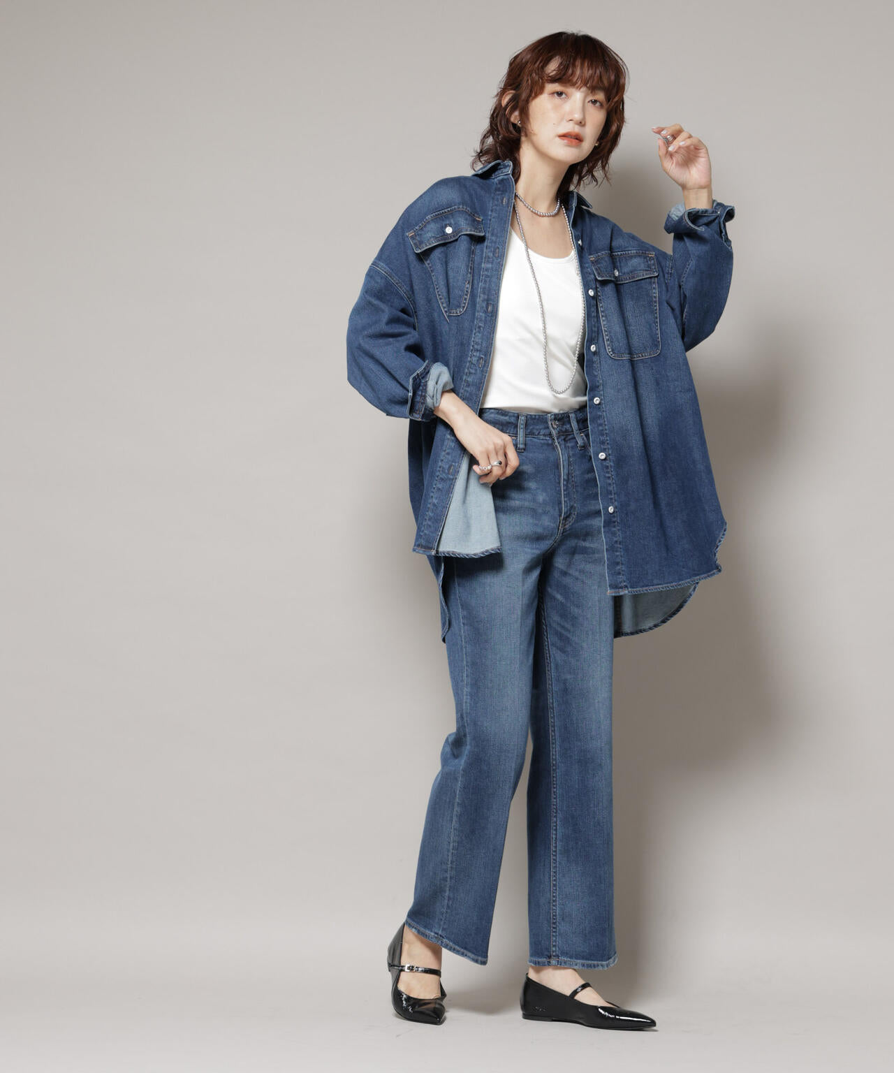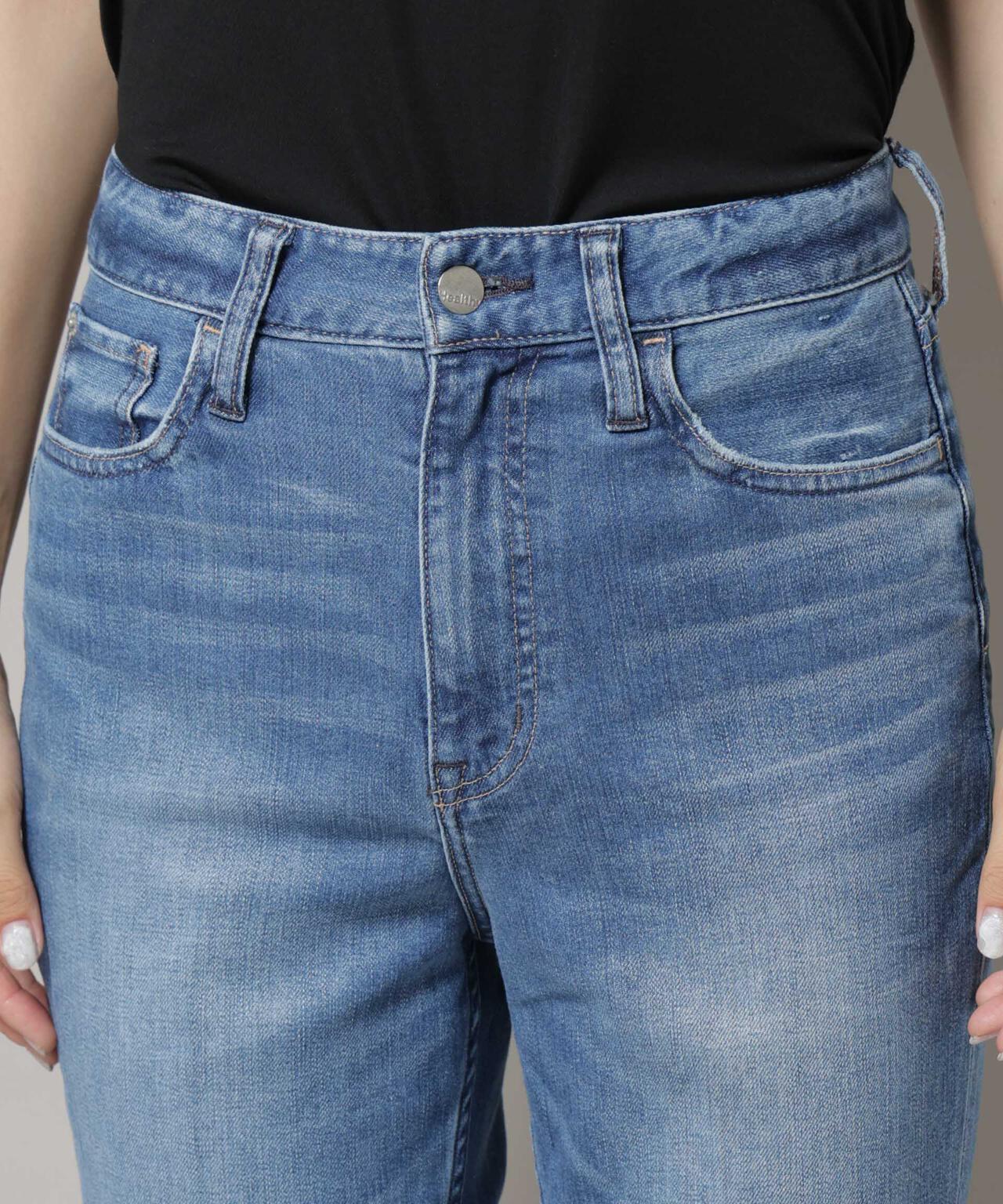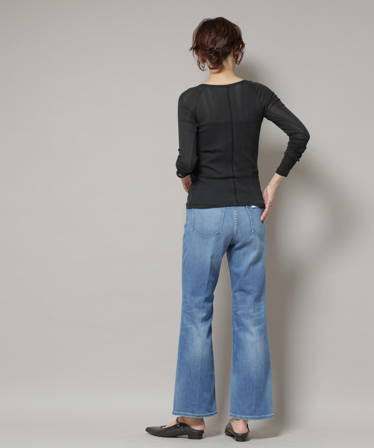 すっきりとした着こなしが叶う人気のハイライズフレアデニム。程よく膝に絞りを入れ、膝下から緩やかにフレアさせたシルエットが足長効果を発揮。キレイめな印象に仕上がるセンタープレス入りで、大人カジュアルに最適なデニムパンツです。
