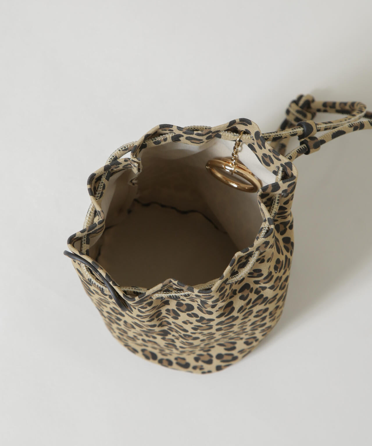アニマル柄のスエード調素材が目を引くボンサックポシェット