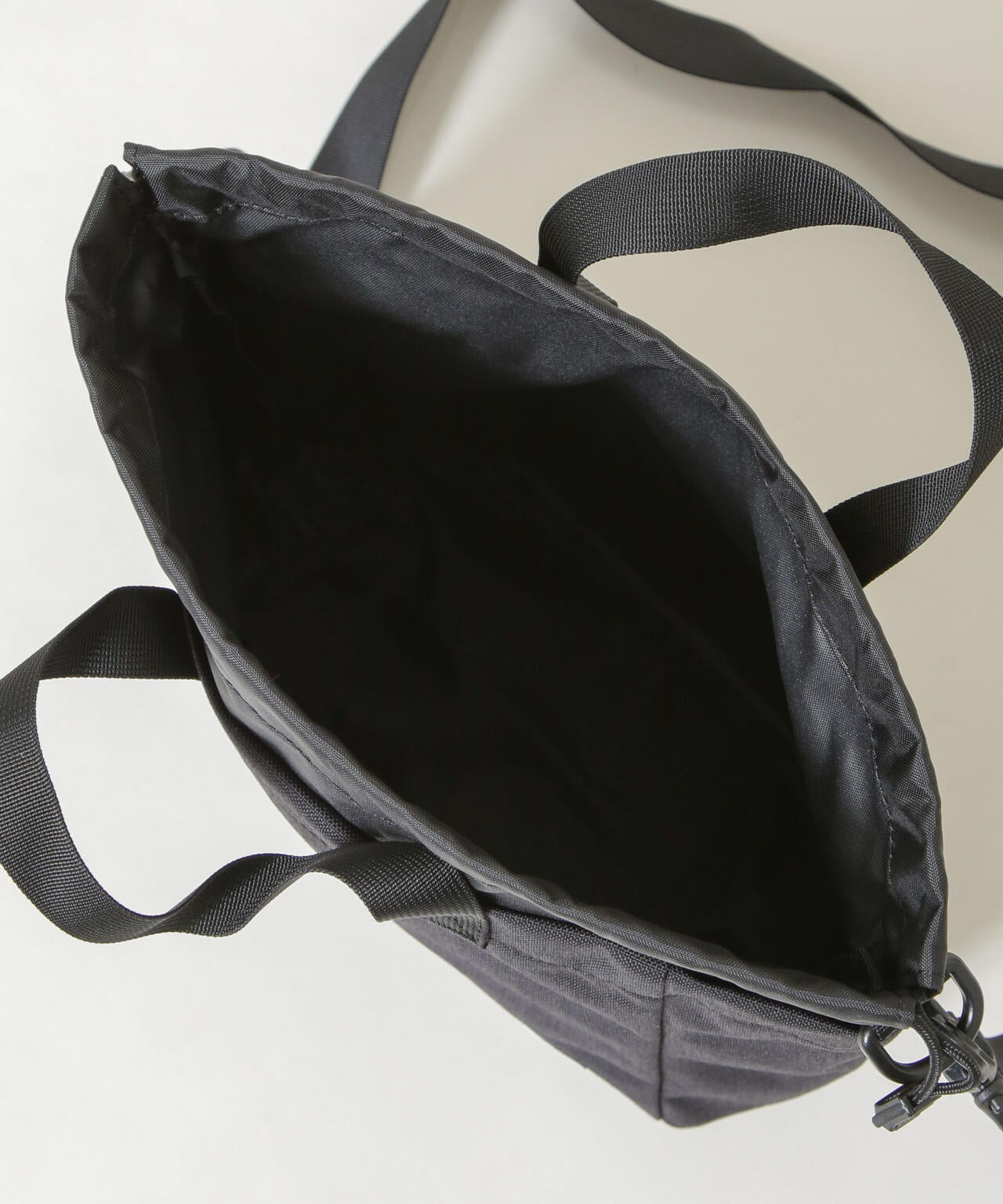 キューブ型のフォルムと天面巾着仕様が特徴ショルダーバッグ
