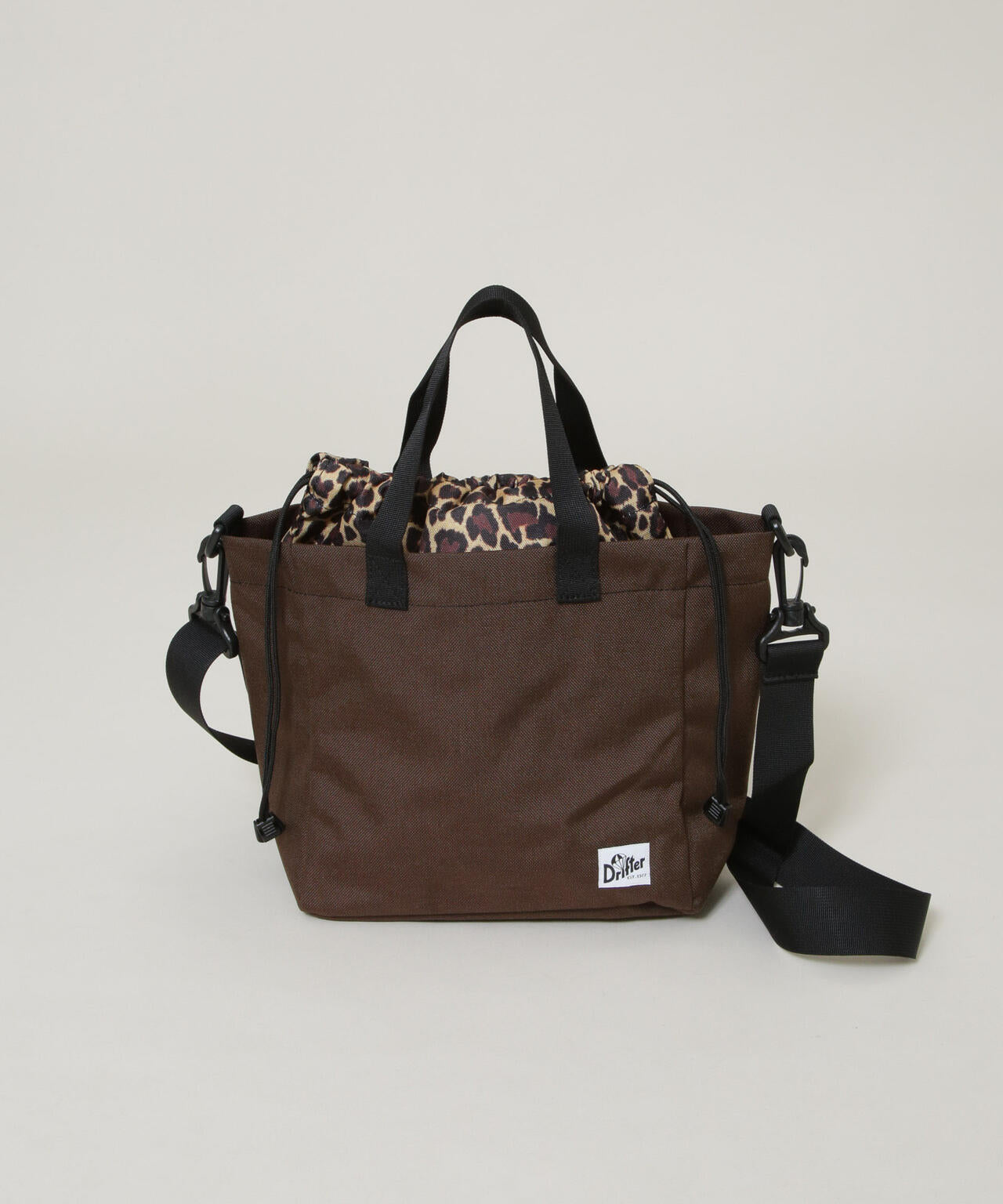 ・天面巾着のレオパードの配色が洒落見えするブラウン