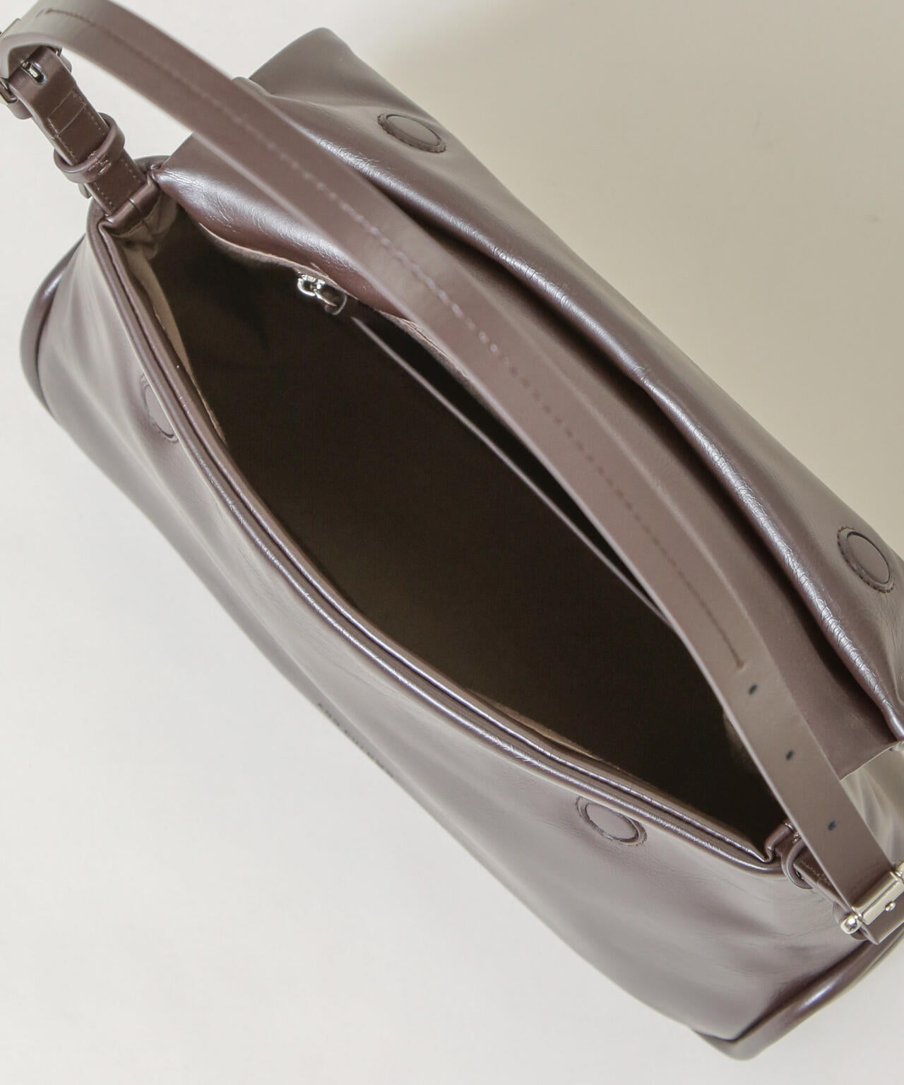 フラップをロールしたデザインと太めのパイピングが特徴