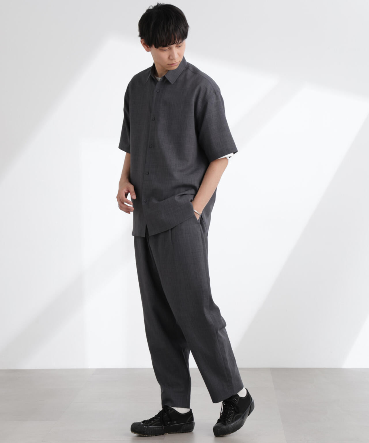 ・無地のワントーンが幅広いスタイリングに活躍