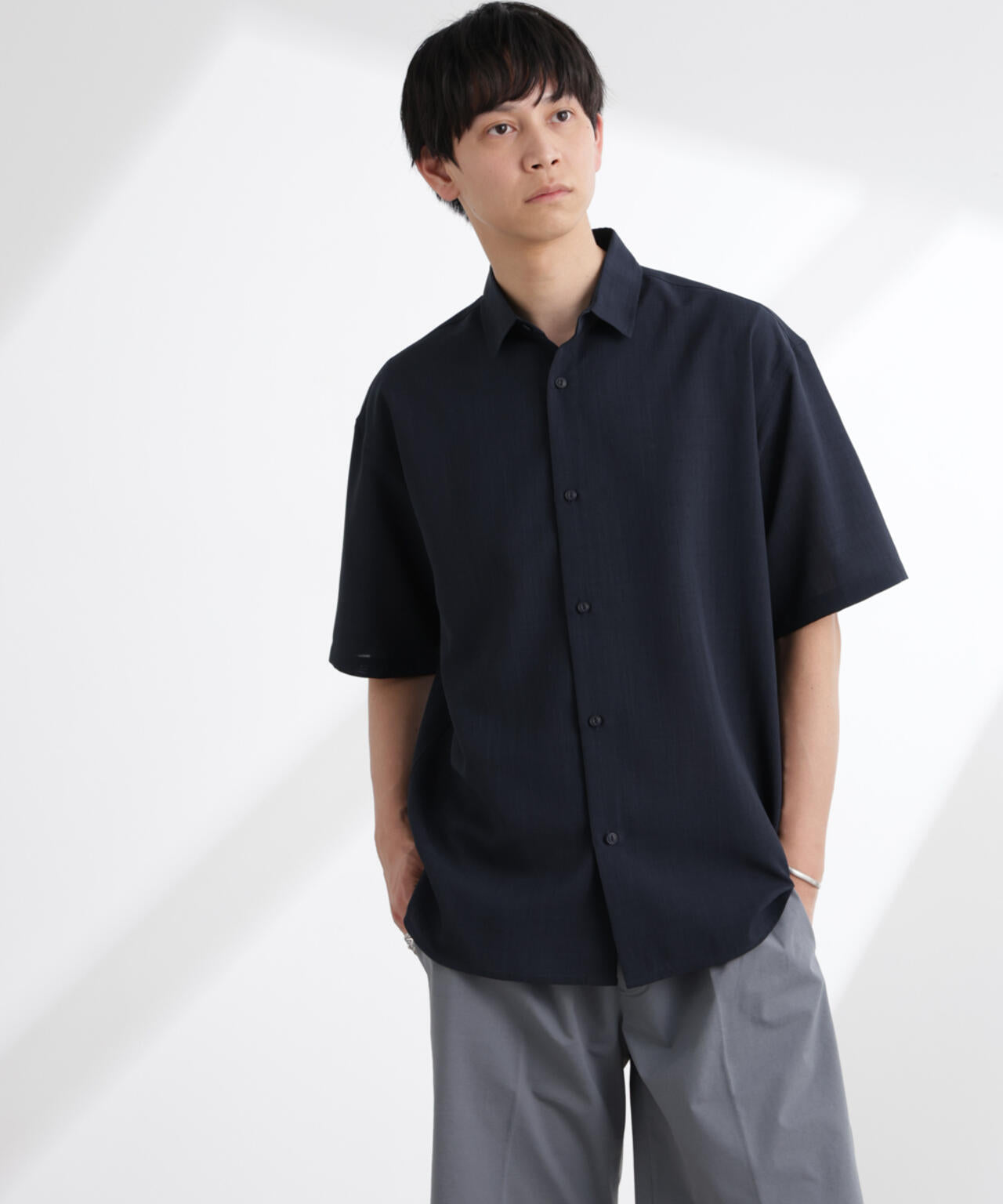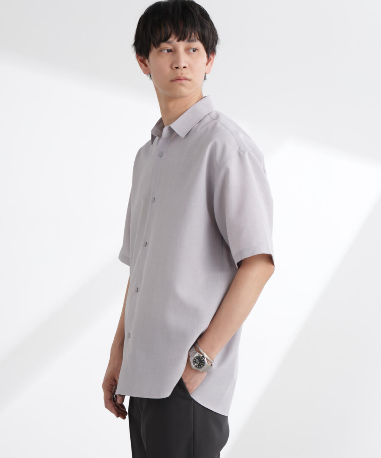 ナノの夏の定番「ライトウェイトドライ」シリーズから登場の1着。肌離れの良さやシワになりずらく乾きやすい仕様が、デイリーの着用にうれしいアイテムです。