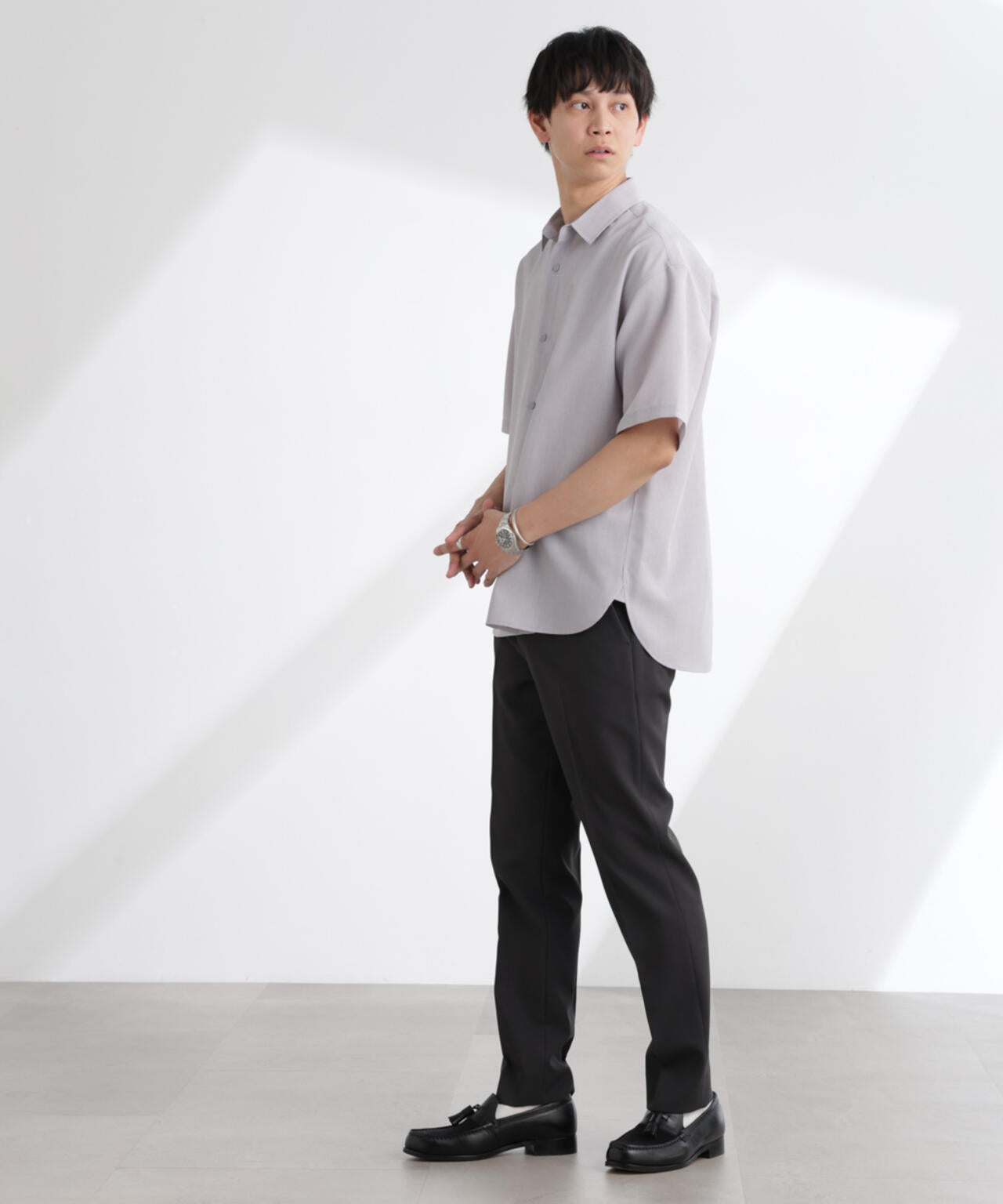 ・スラックスと合わせる清涼感のあるシャツスタイリングが◎