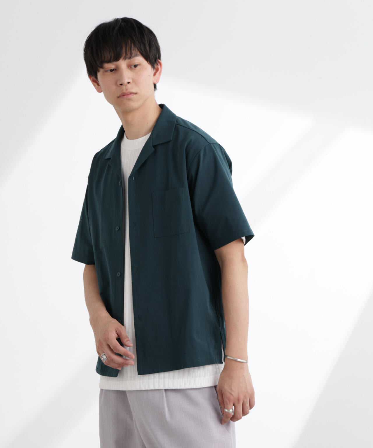 便利な機能を搭載した半袖のオープンカラーシャツ