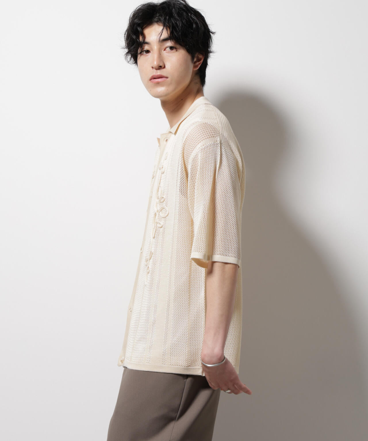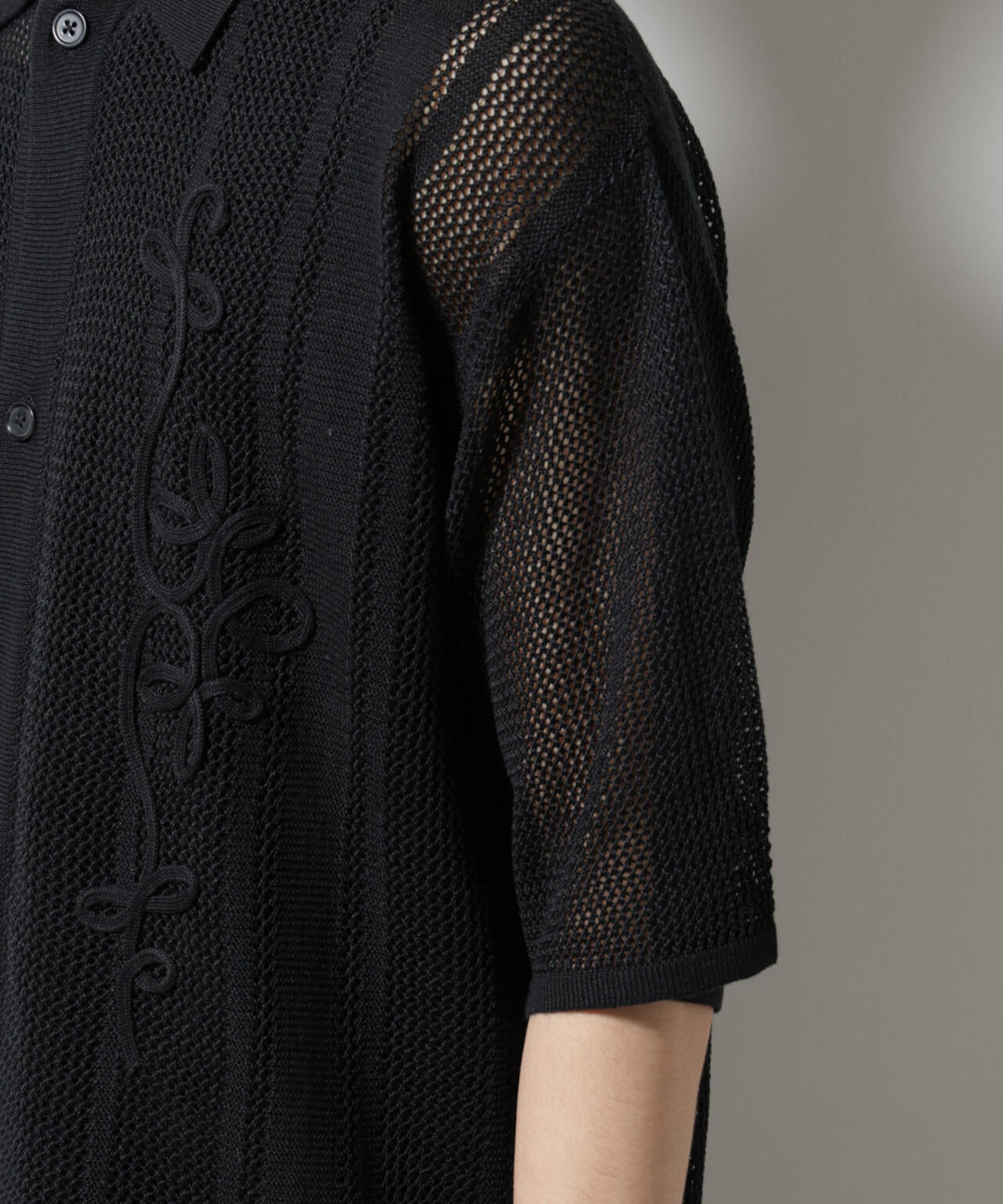 テクニカルなデザインがさりげないアクセントになるシャツ。透け感のある生地を使用した、レイヤードスタイルを楽しめるアイテムです。