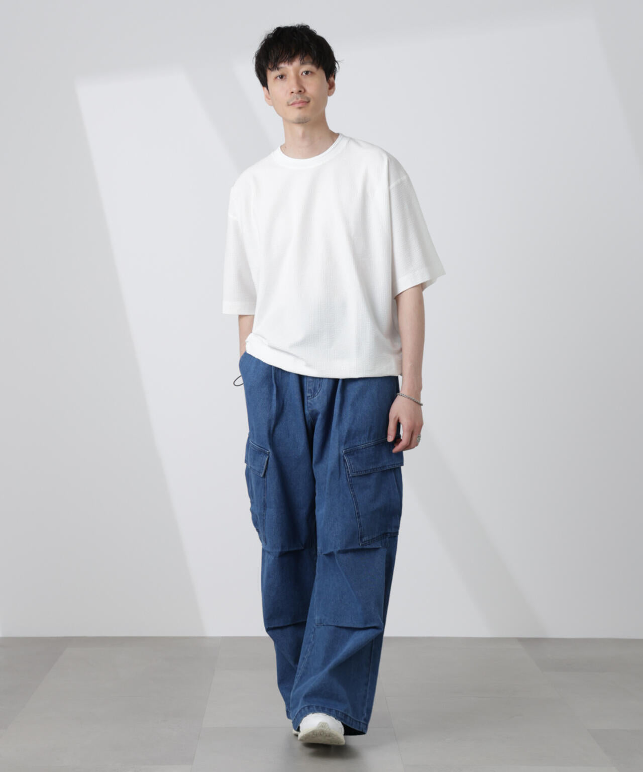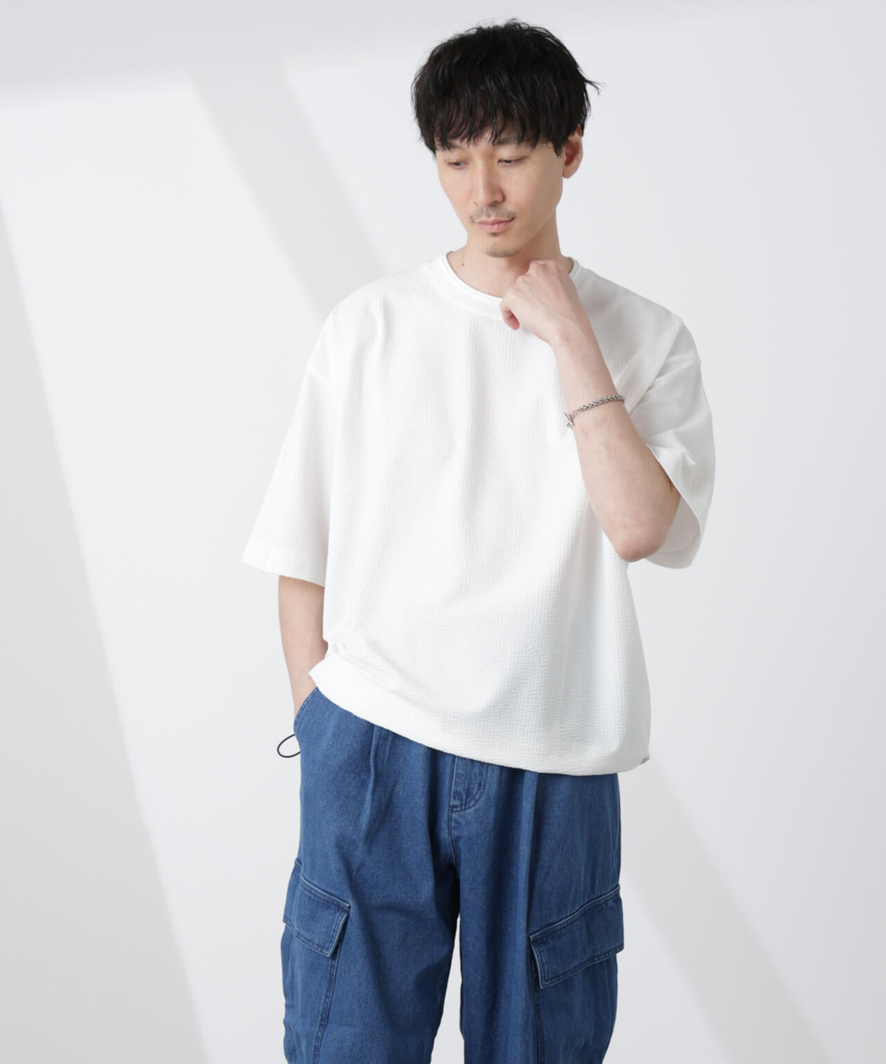 程よい肉感のジャージー素材を採用したワイドTシャツ