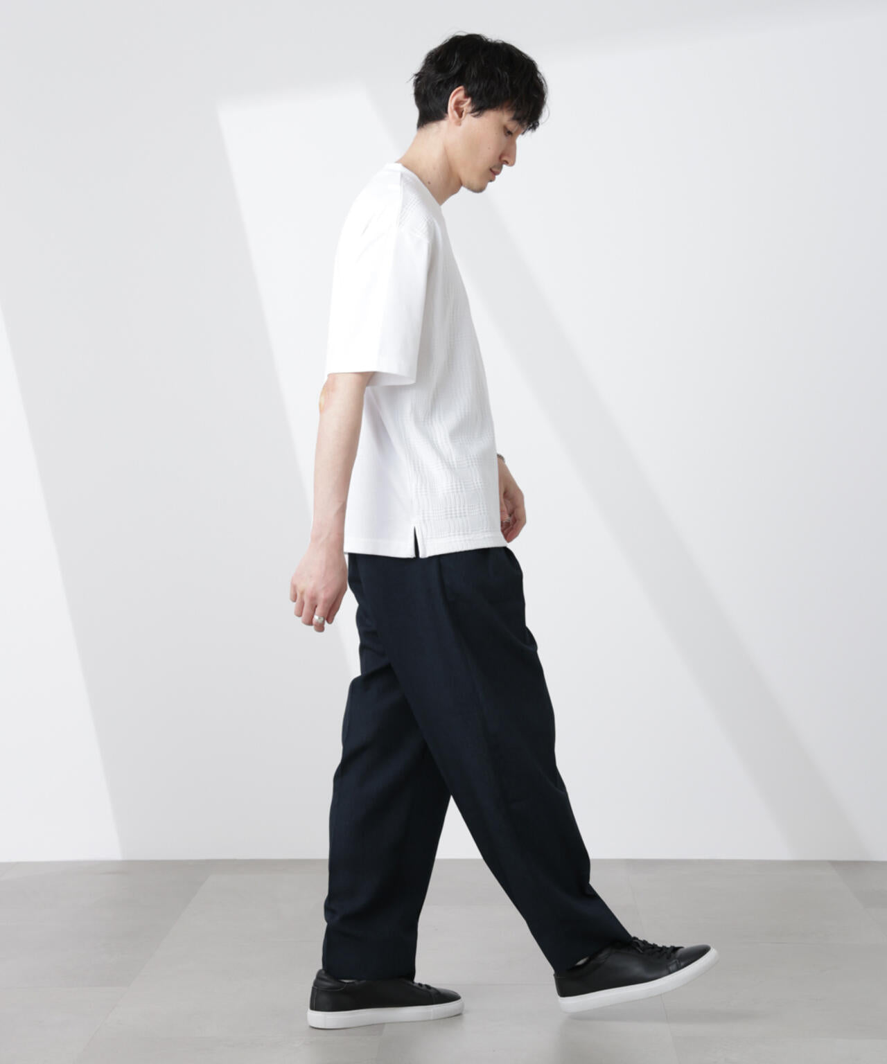クリーンな印象を与えるテーパードシルエット