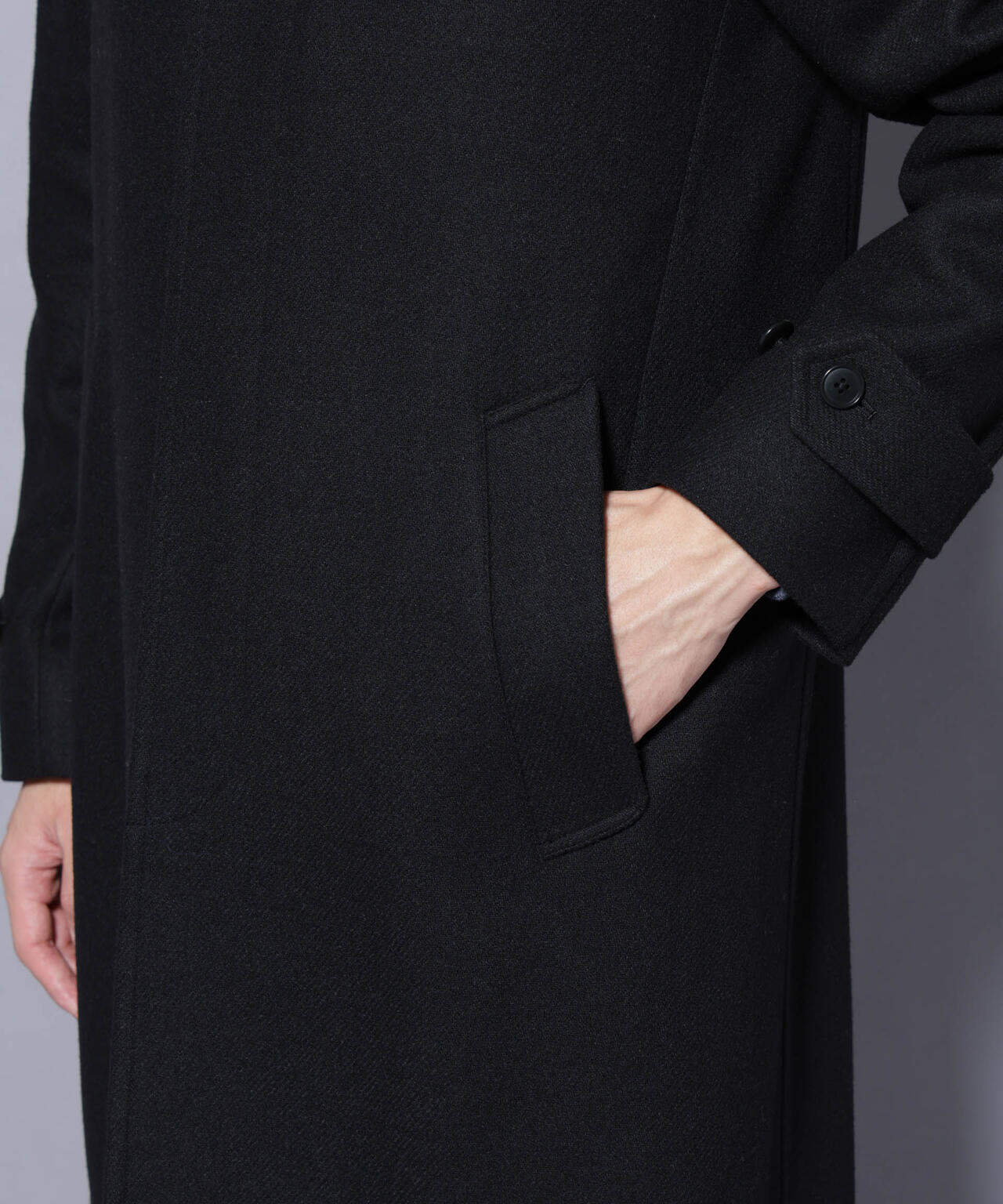 柔らかなウールブレンドメルトンを使用した端正なステンカラーコート。比翼仕立てによるミニマルなフロントデザインが、洗練された印象を演出。ビジネスシーンはもちろん、休日のカジュアルスタイルにも活躍する汎用性の高いアイテムです。