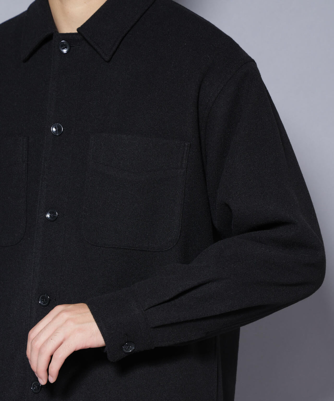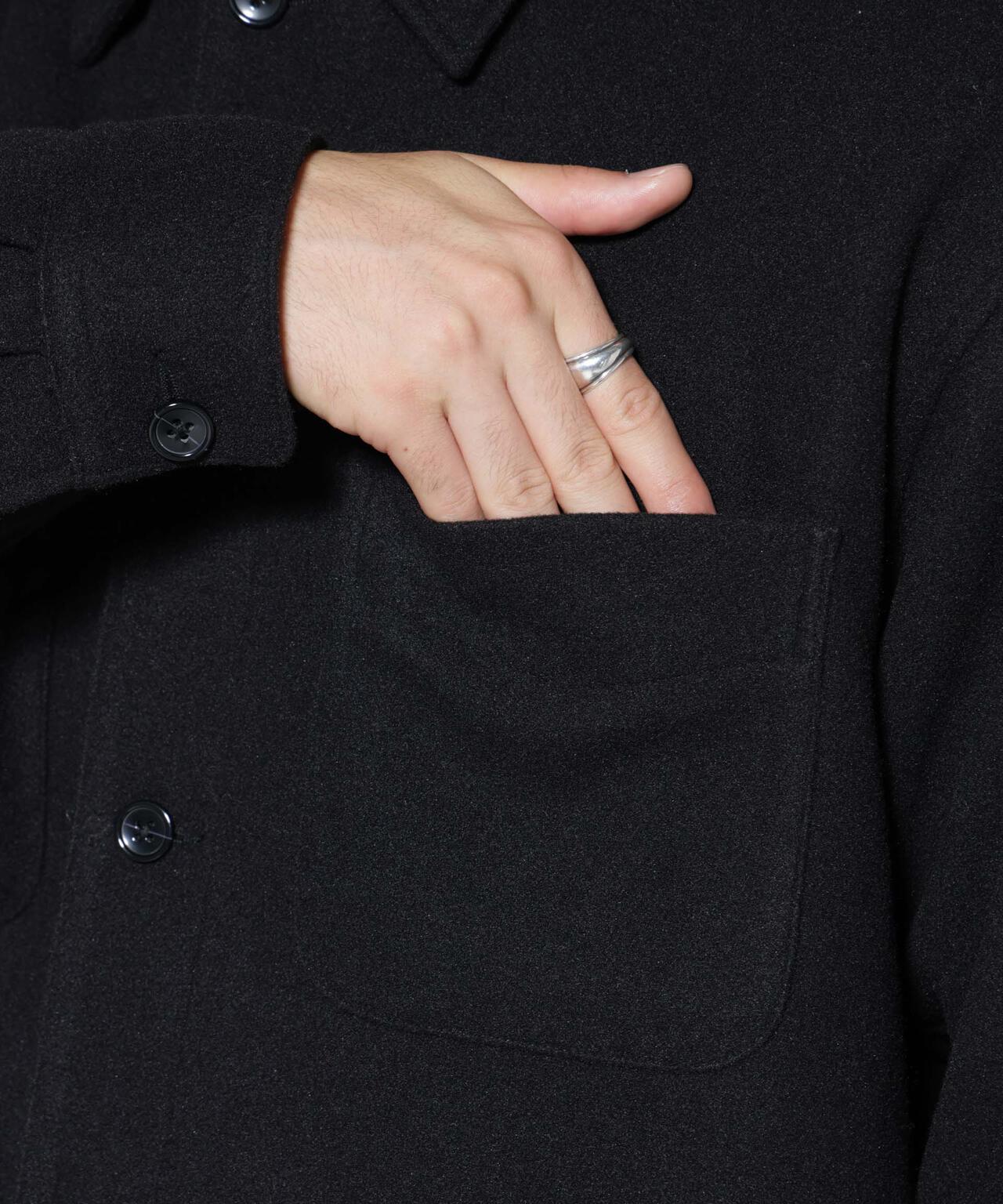 ウールのような心地よいタッチ感に伸縮性のあるテックメルトン素材を使用したシャツブルゾン。胸やサイドのポケットなど機能性も優れたブルゾンはインナー使いによって冬まで着用できるアイテムです。