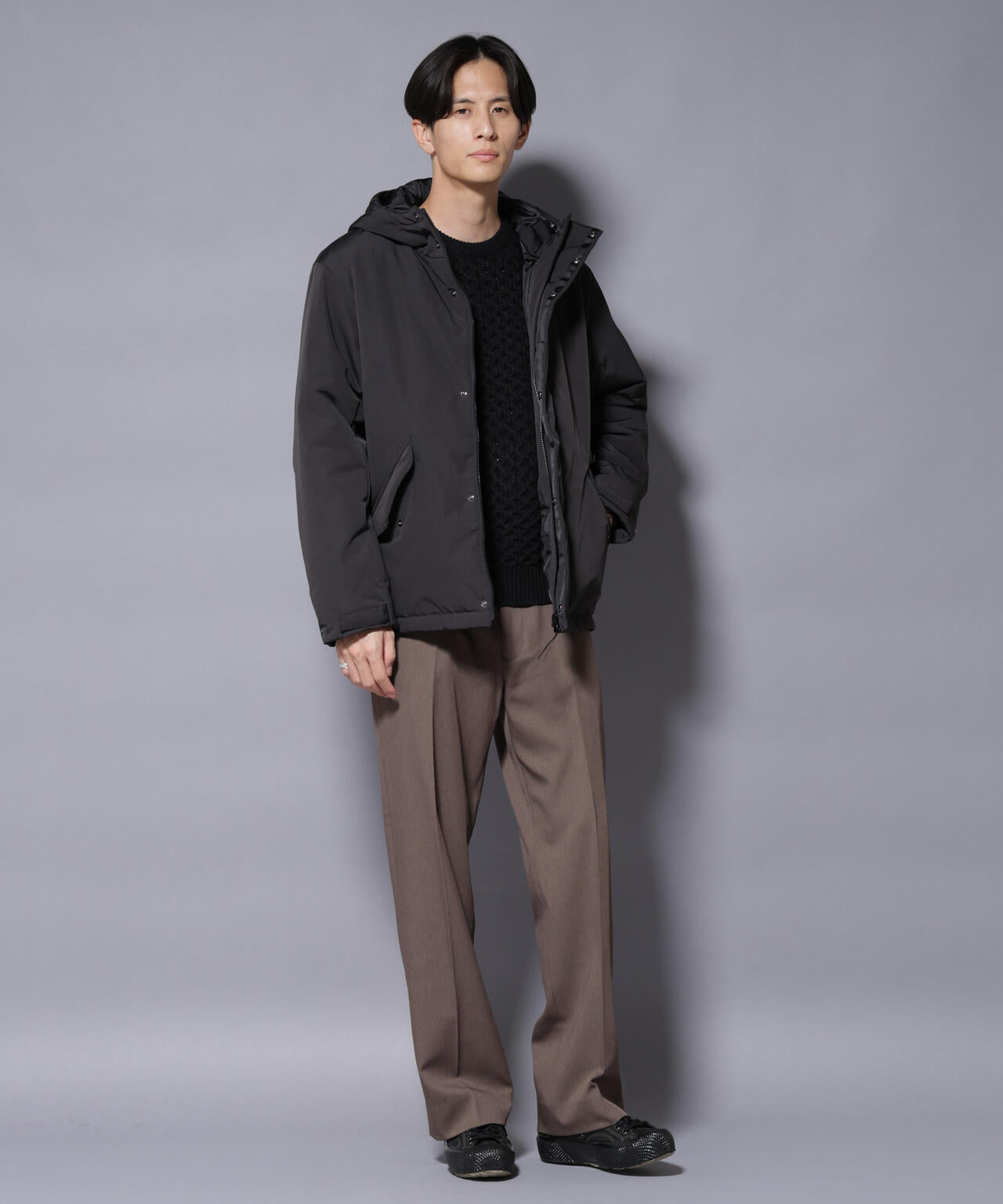 ミリタリーベースにReデザインした中綿ブルゾン。程よくルーズなシルエットは、オーバーサイズのトップスとも相性のよい一枚。機能綿を使用しているので、暖かいのはもちろん、軽くて柔らかく、通気性にも優れたアイテムです。