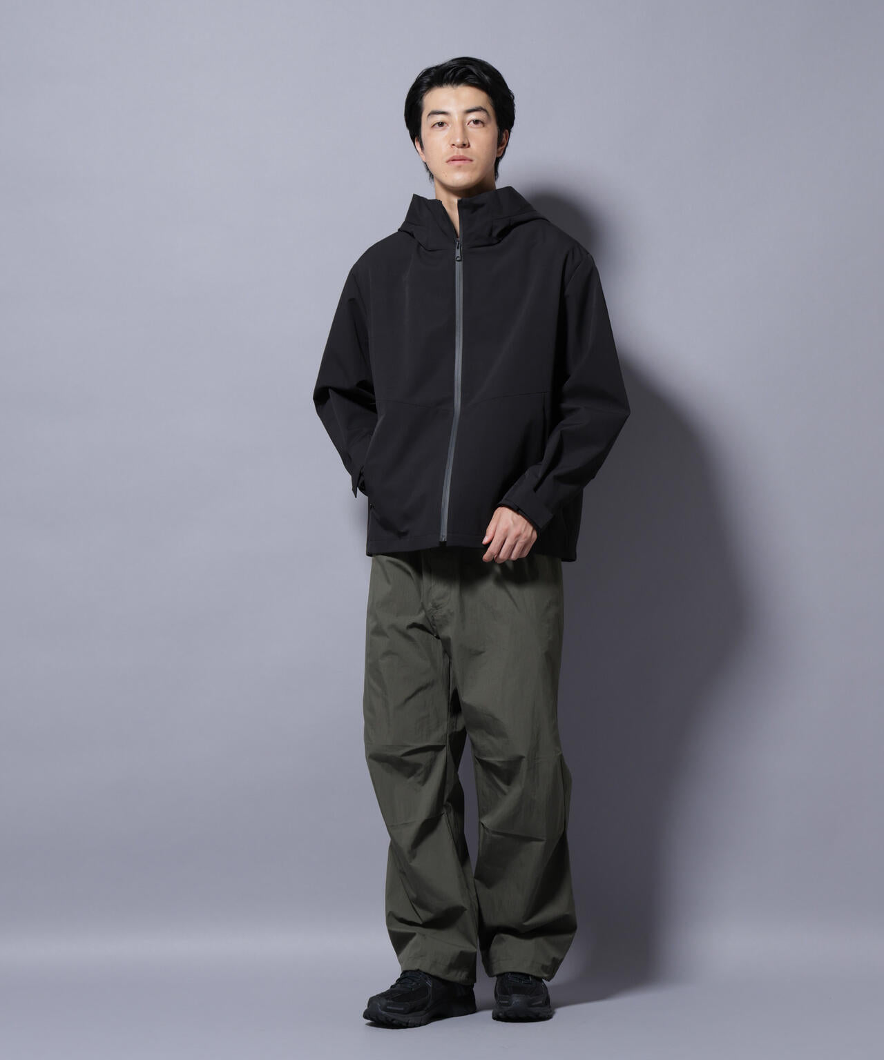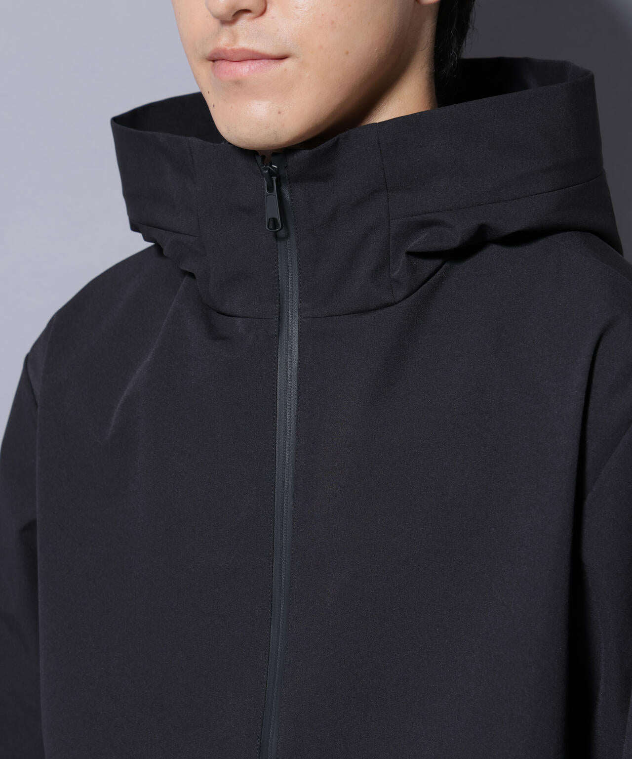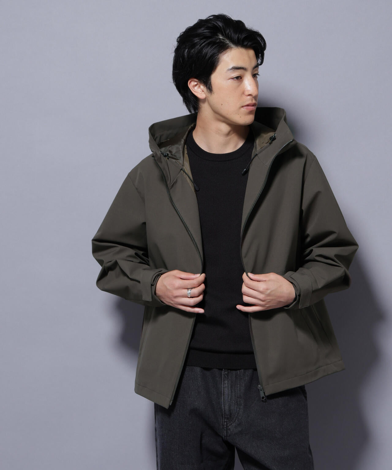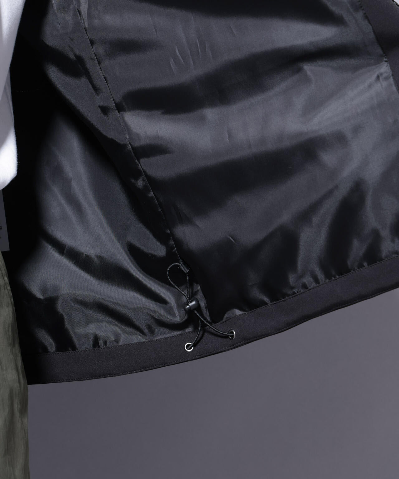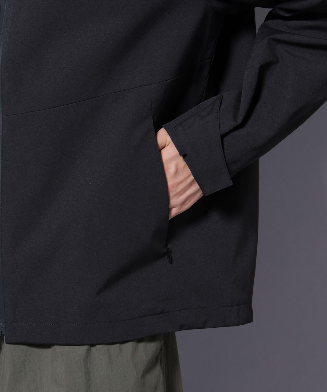 アーバンライクなデザインとシルエットに仕上げたブルゾン。フラットな表面感に仕上げたマットな風合いの表生地と、生地の裏側にラミネート加工を施し、裏材をボンディングした3レイヤー素材を使用。幅広いシーンで活躍する機能性とデザイン性に優れた1着です。
