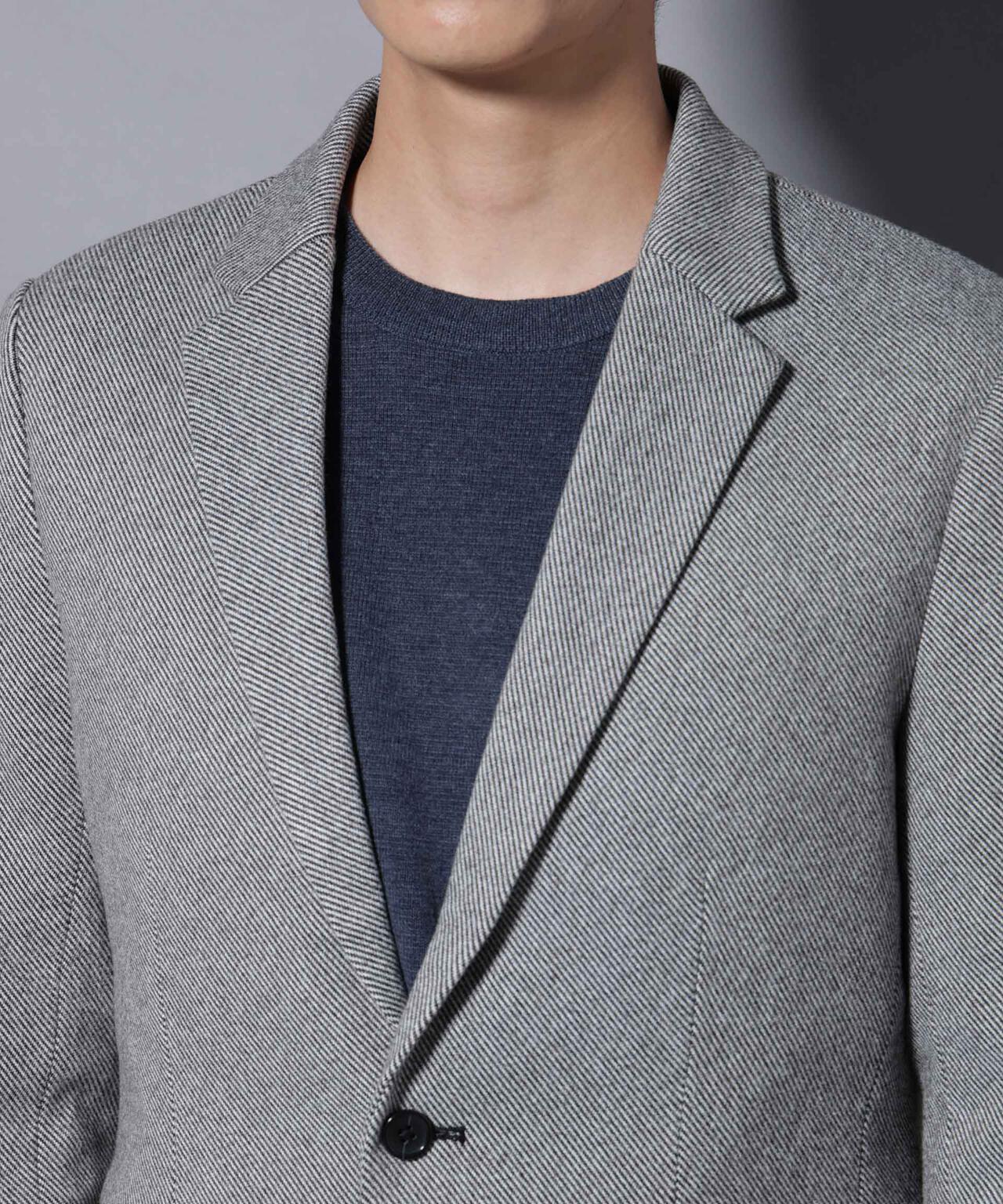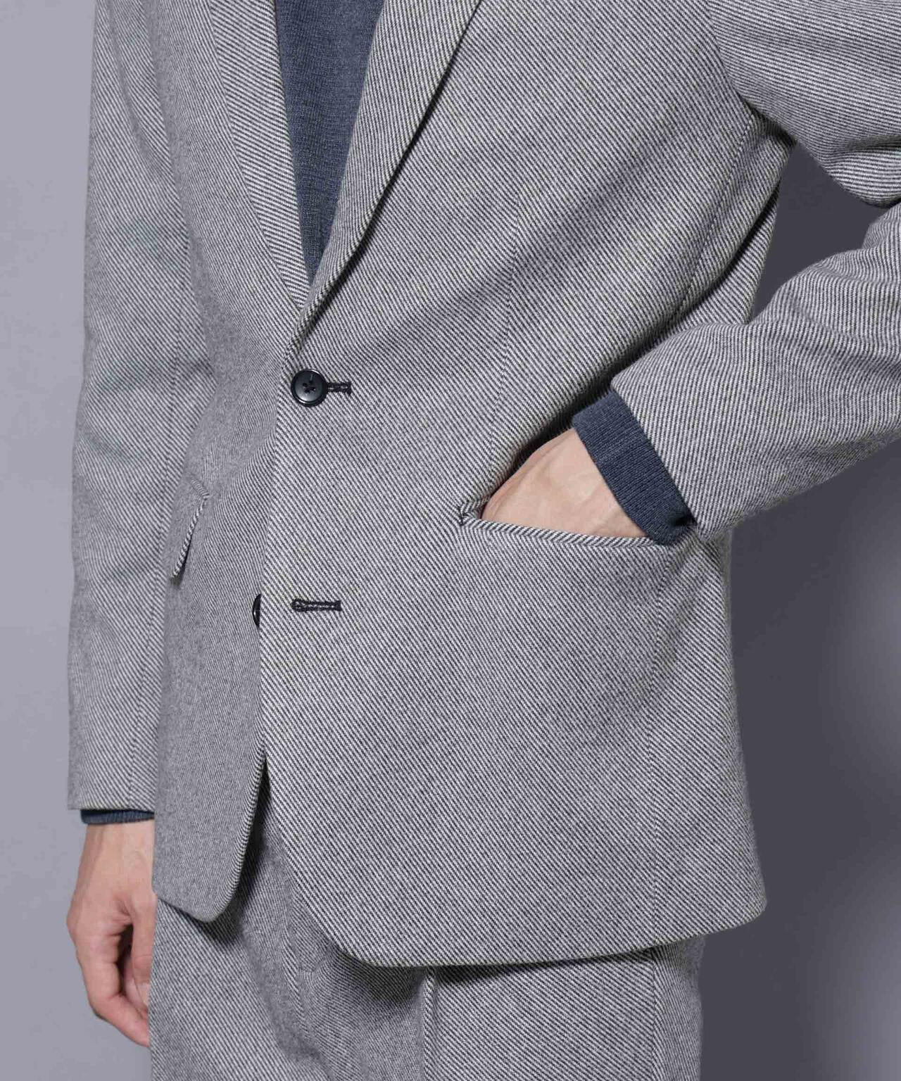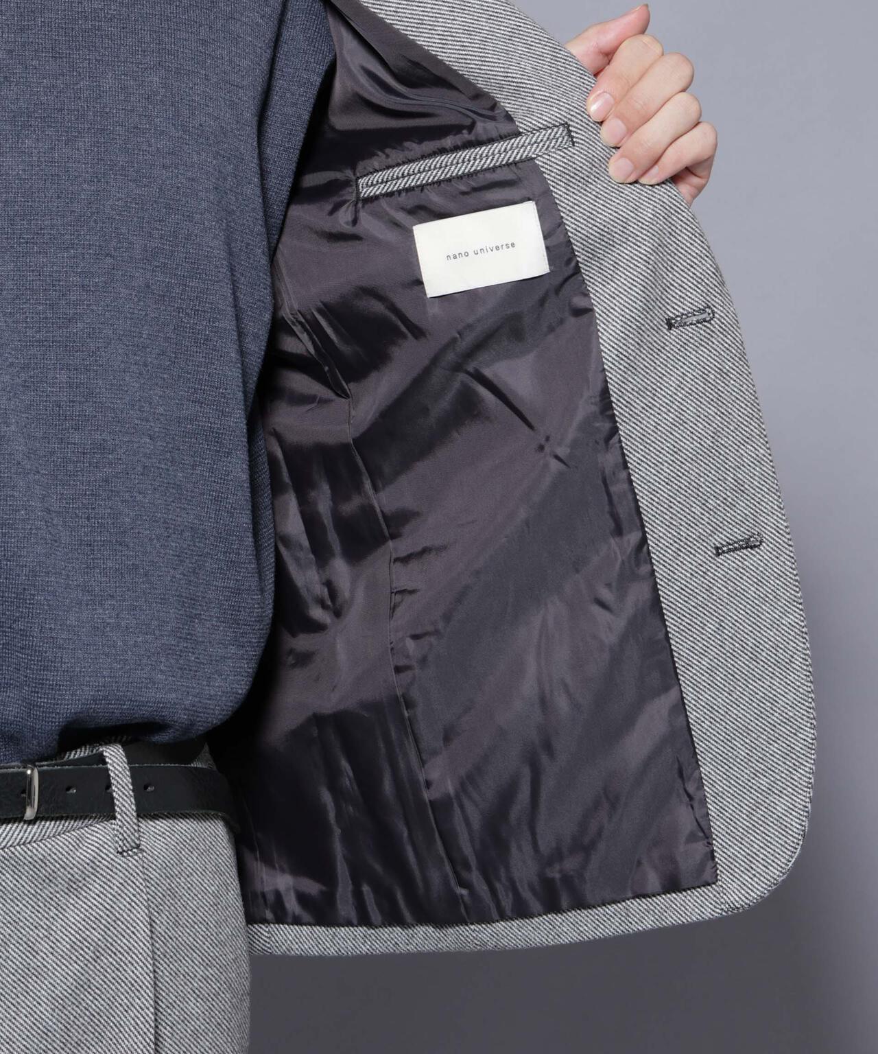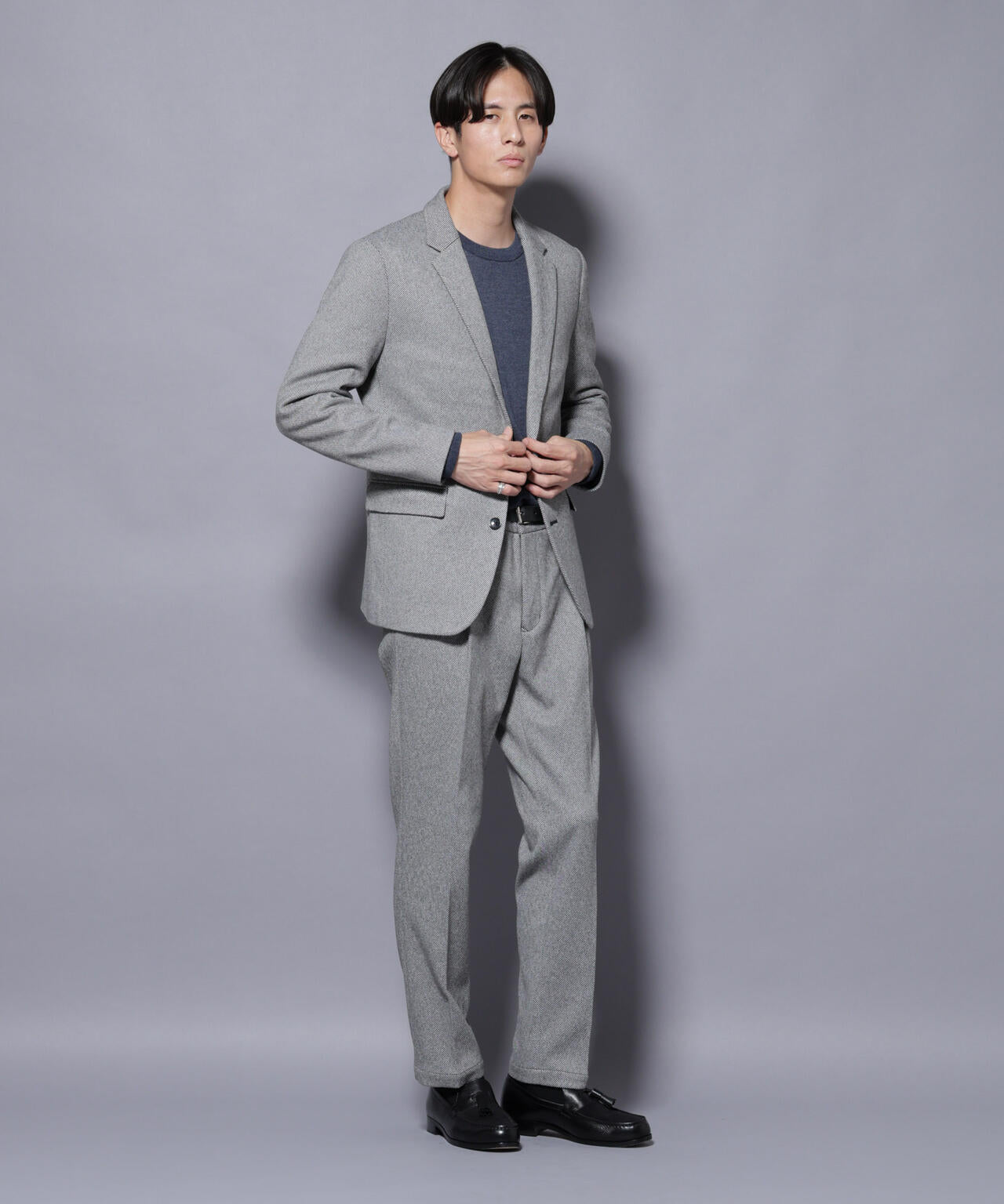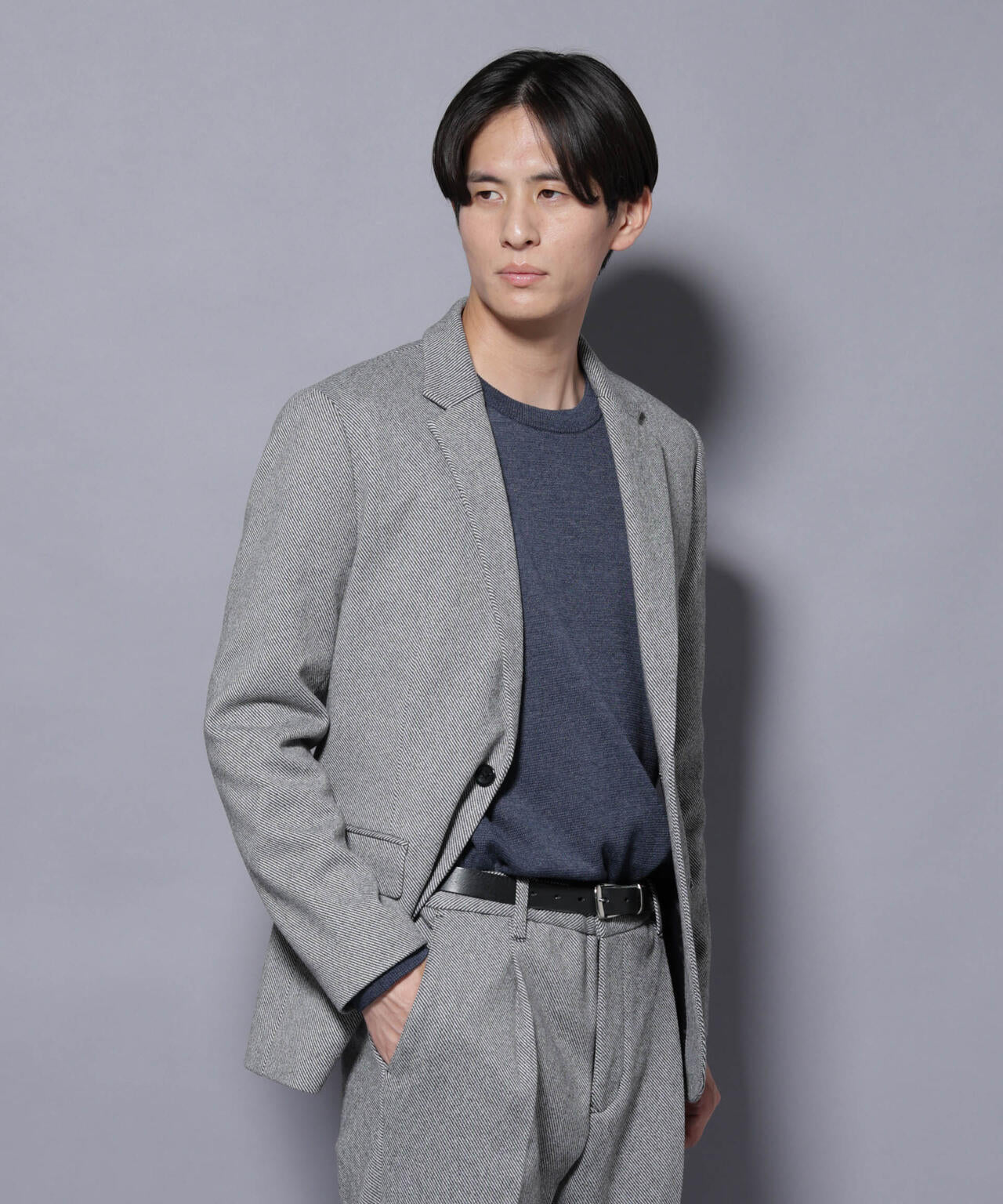 昨年ご好評いただいたアイテムの織柄を変更し新色として登場したウォームジャケット。同素材のスラックスと合わせるセットアップで活躍する1着。