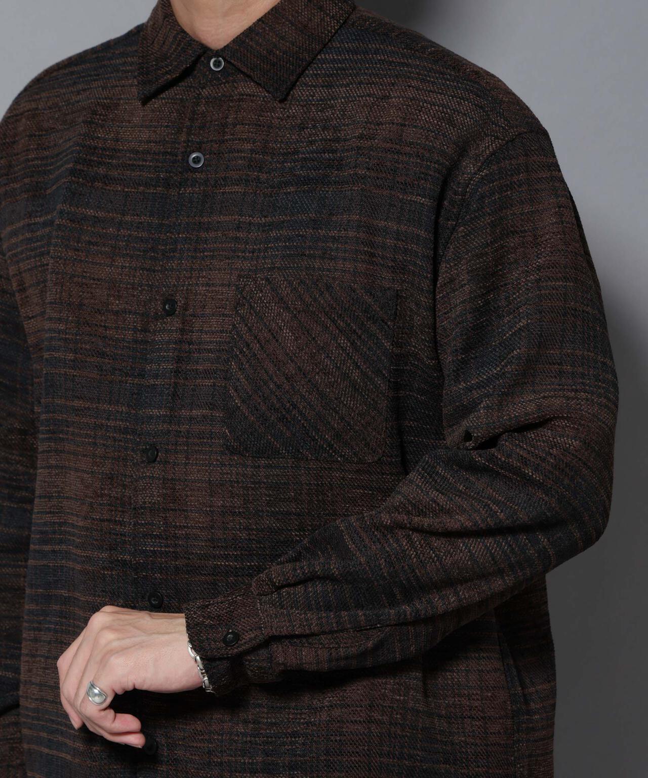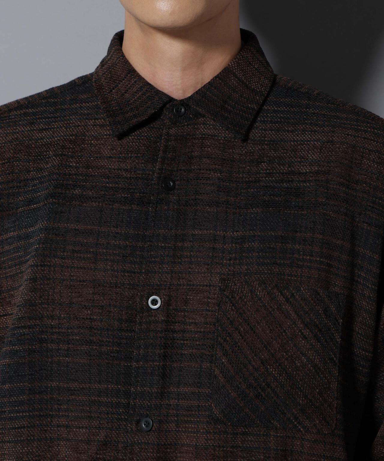 オリジナルで組まれたダークトーンのチェック柄が魅力の長袖シャツ。起毛しているモールの糸を使用している為、微光沢と起毛感のある秋冬らしいアイテムになっています。