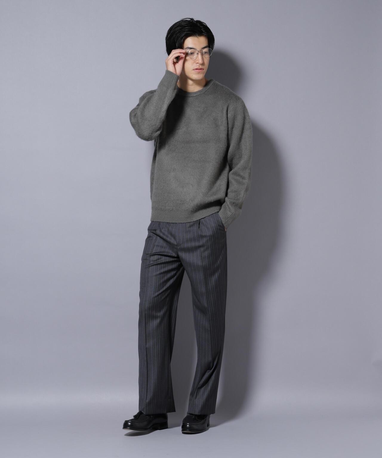 モヘアのような毛足の長いふんわりとしたニット。軽くてウォーム感のある1枚は、インナー使いから1枚着としても重宝。肩にかけてスタイリングのプラスにするのもお勧めです。