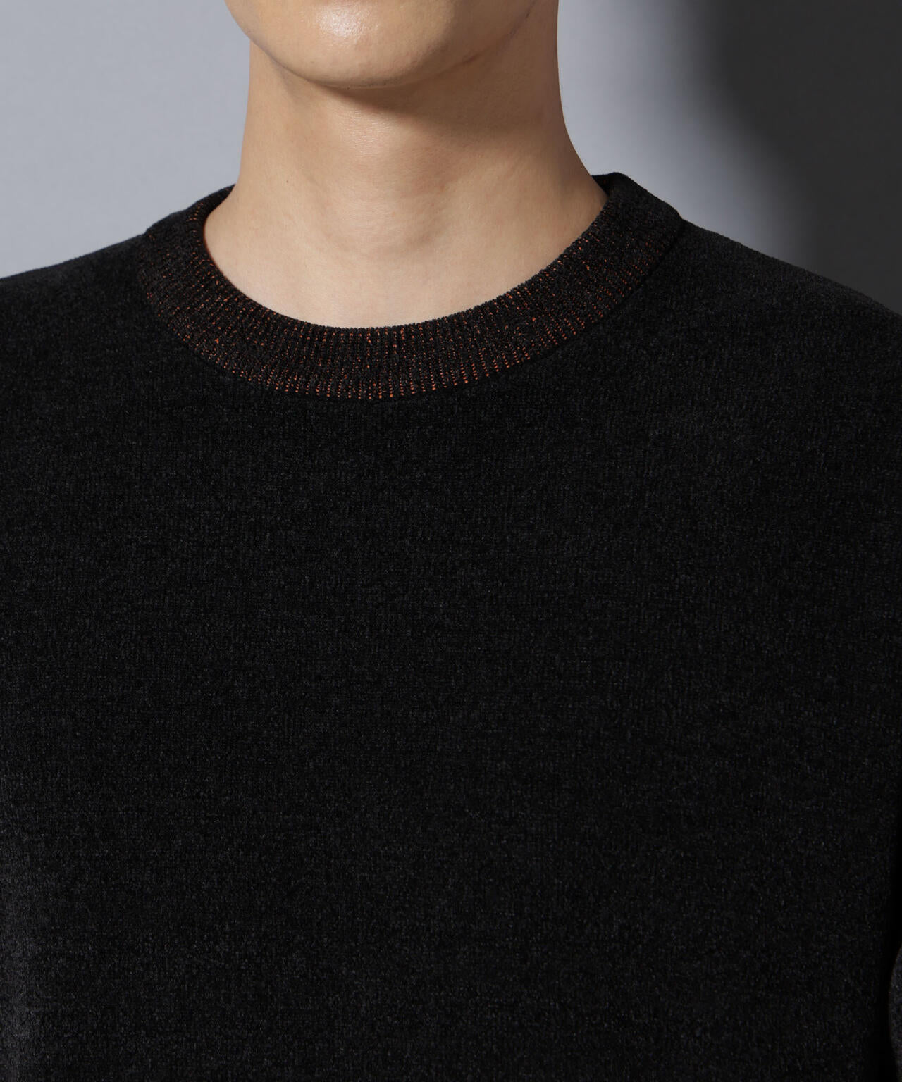 ウォーム感のあるモールヤーンを使用したクルーネックニット