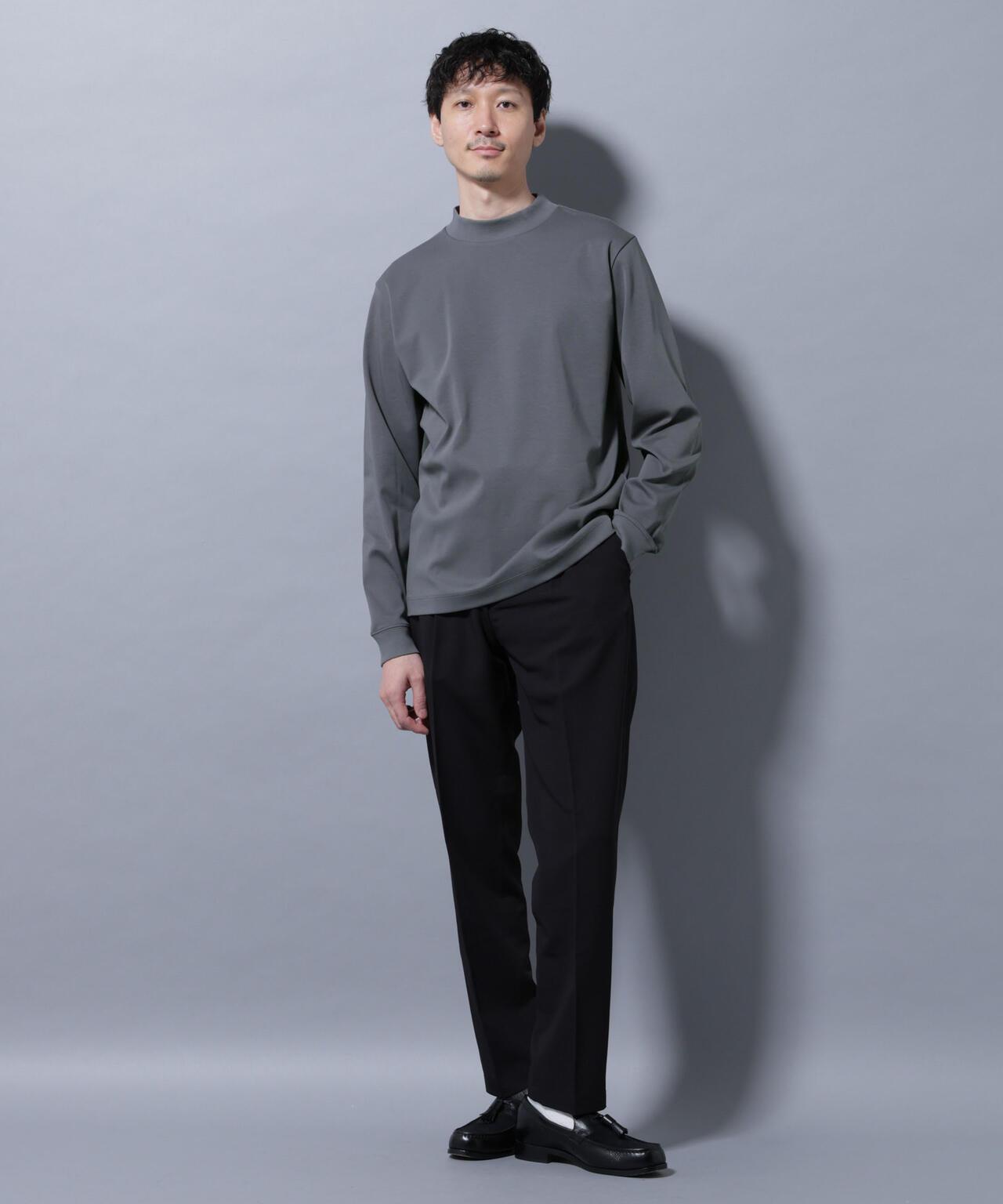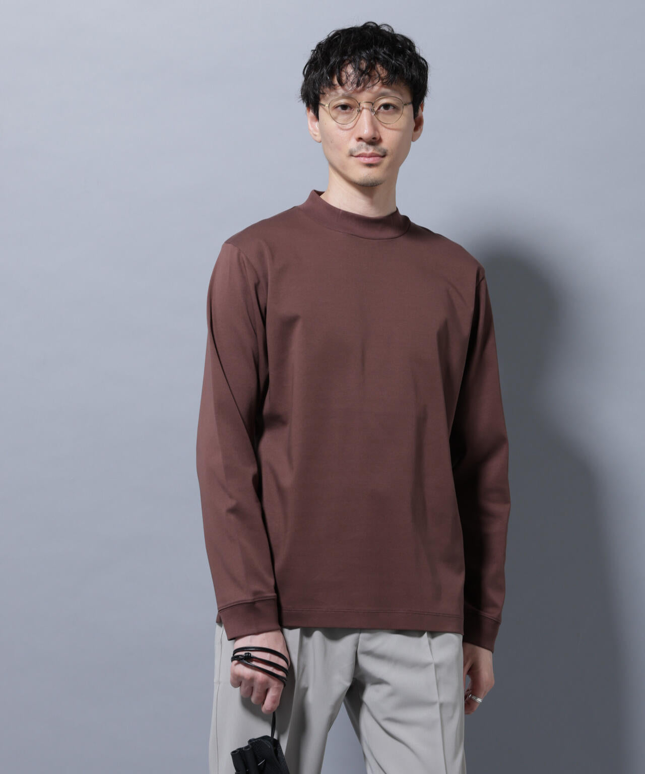 ナノユニバース定番のアンチスメルシリーズから登場のモックネックTシャツ。部屋干しが続いても生乾き臭を防ぐことができ、汗の臭いにも効果的な特殊加工を施した生地が魅力。シンプルかつベーシックなデザインで、一枚でもインナーとしても重宝する1着です。