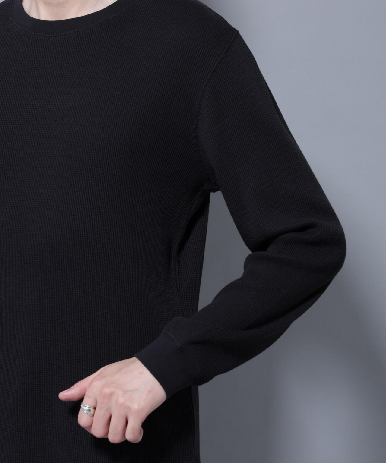 ナノユニバース定番のアンチスメルシリーズから登場のワッフルTシャツ。部屋干しが続いても生乾き臭を防ぐことができ、汗の臭いにも効果的な特殊加工を施した生地が魅力。シンプルかつベーシックなデザインで、一枚でもインナーとしても重宝する1着です。