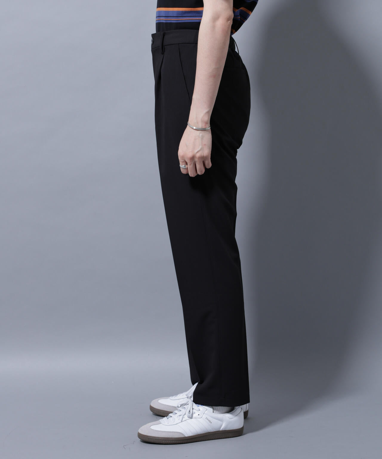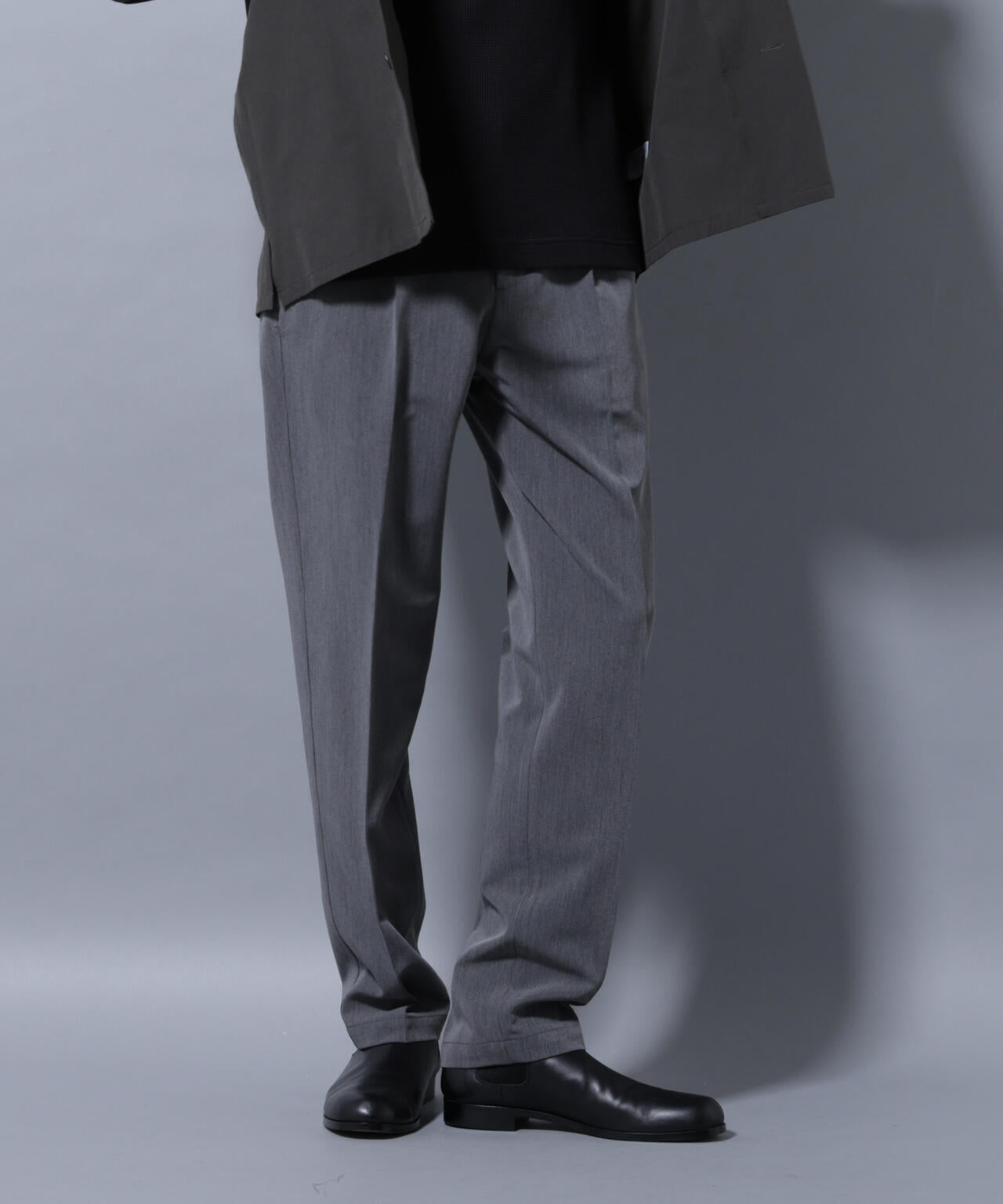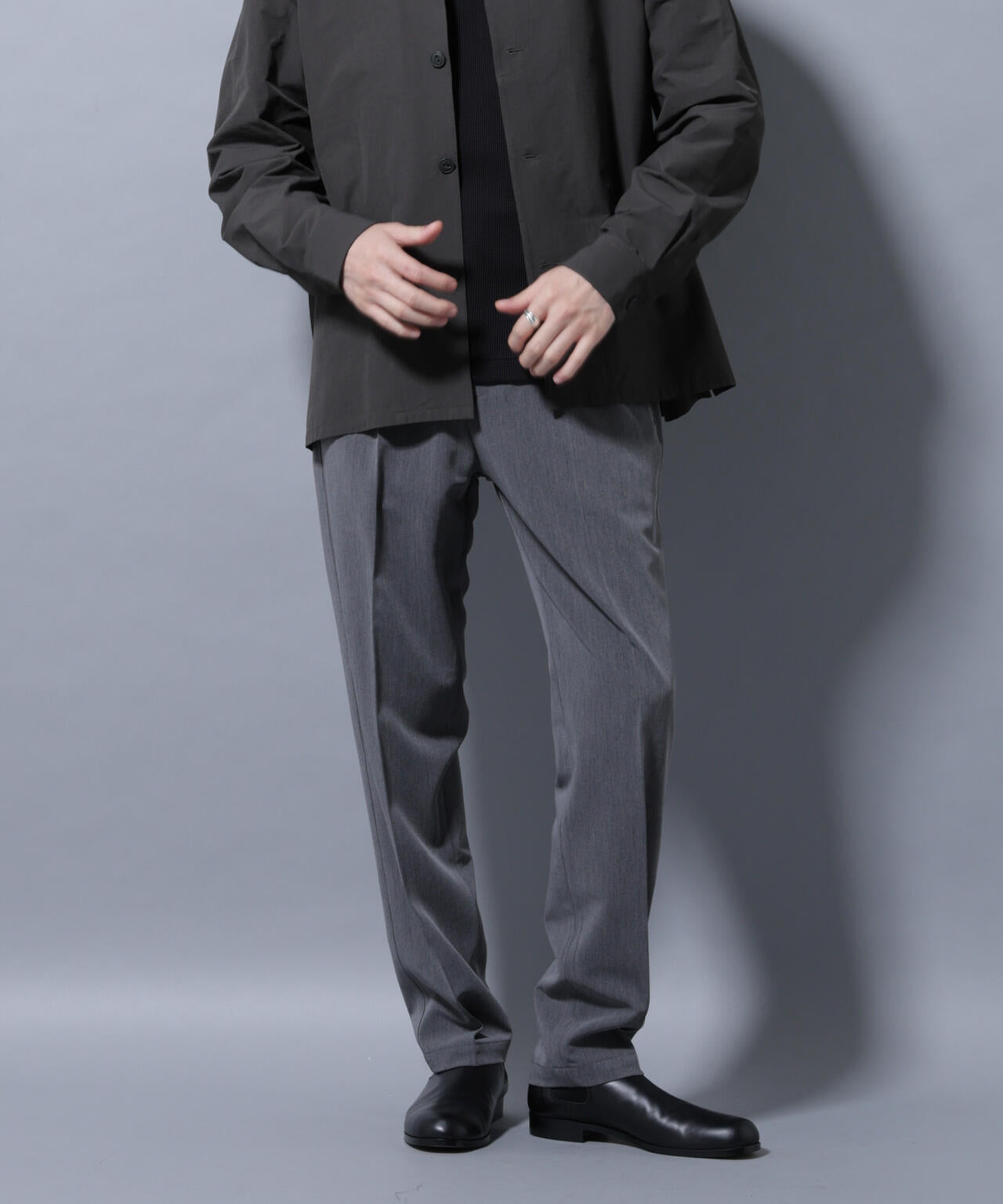 上品な風合いでオンオフ問わず活躍するキレイ目スラックス。裾に向かってテーパードがかかったシルエットとタック入りのデザインで、キレイなシルエットのリラックスパンツに仕上げた1本です。