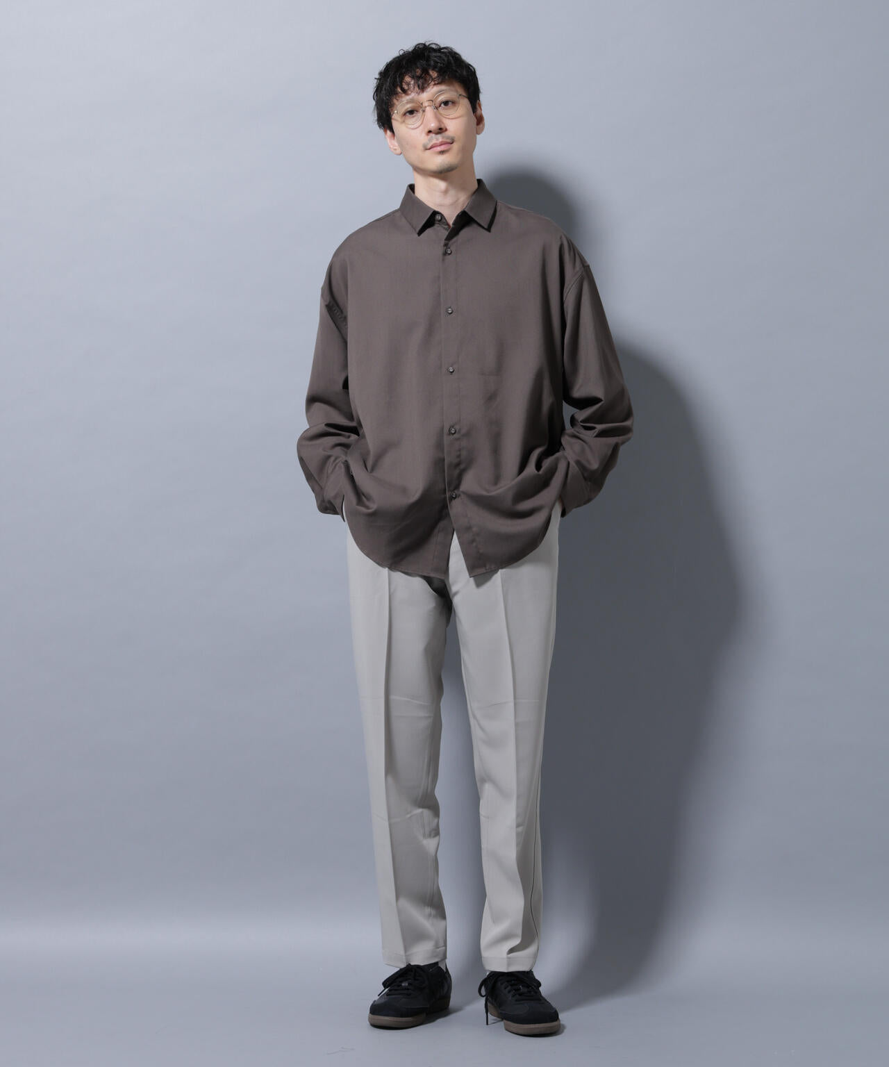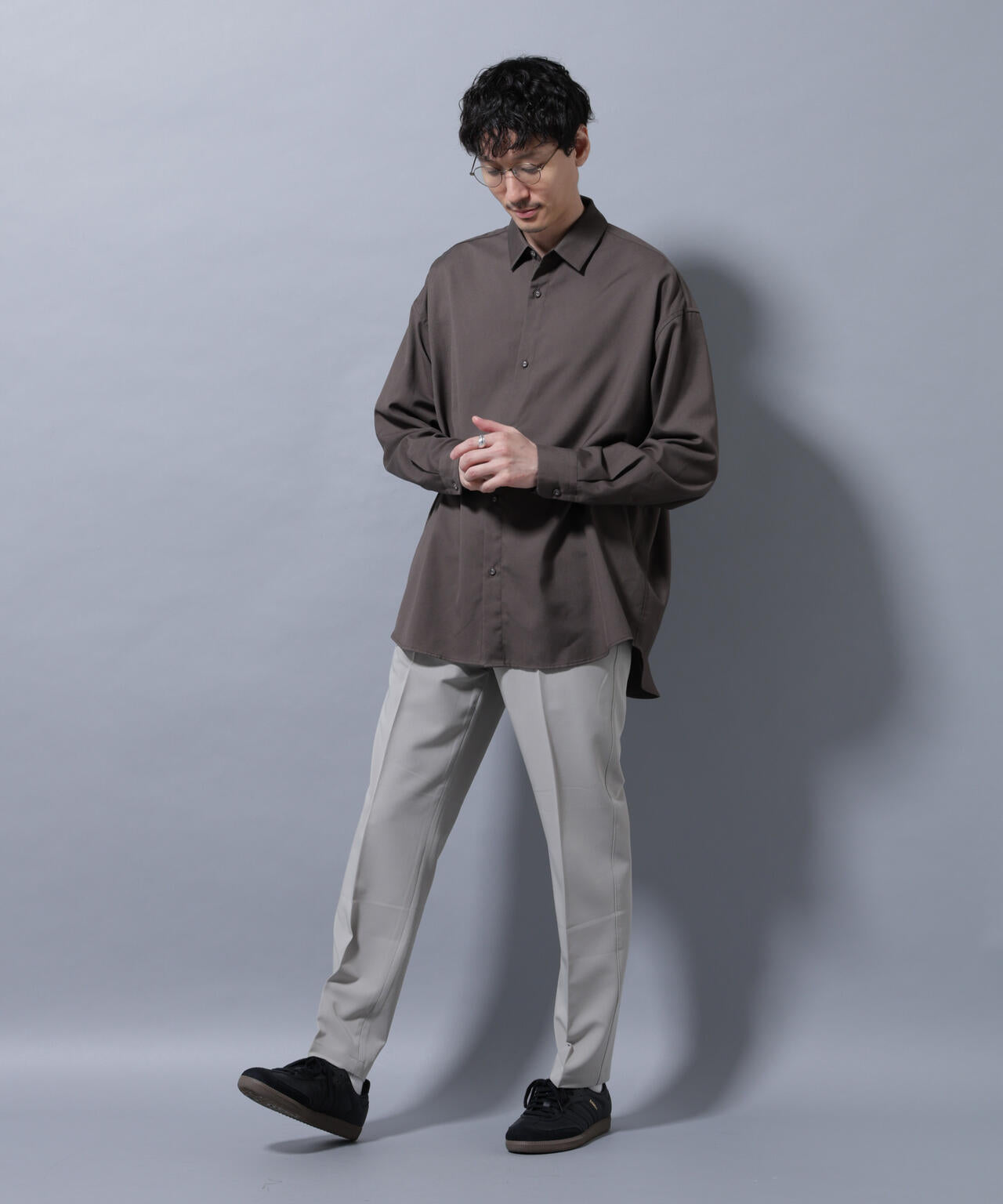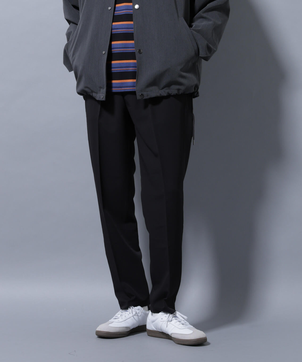 上品な風合いでオンオフ問わず活躍するキレイ目スラックス。裾に向かってテーパードがかかったシルエットとタック入りのデザインで、キレイなシルエットのリラックスパンツに仕上げた1本です。