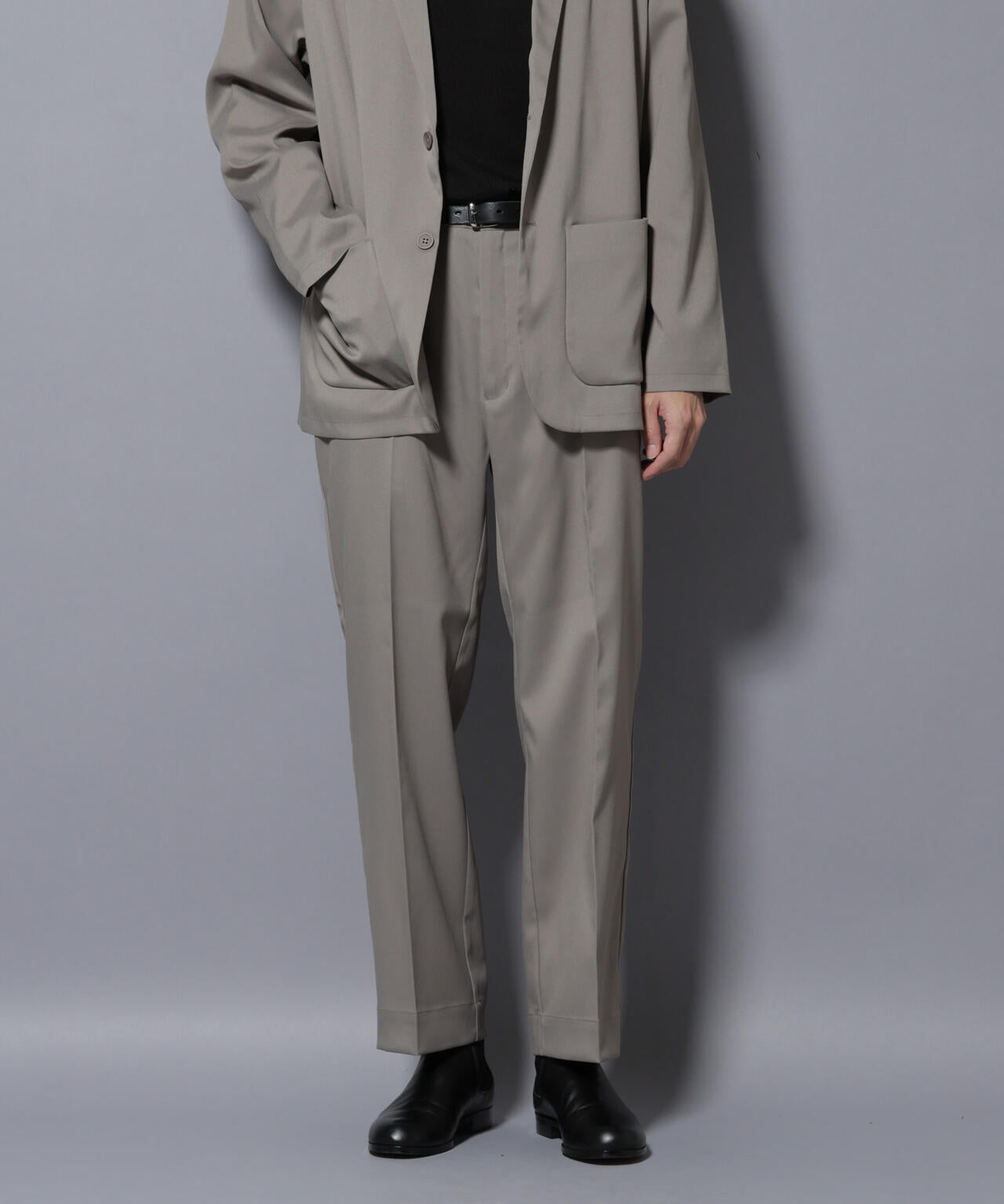 ・同素材のジャケットと合わせたセットアップスタイルがおすすめ