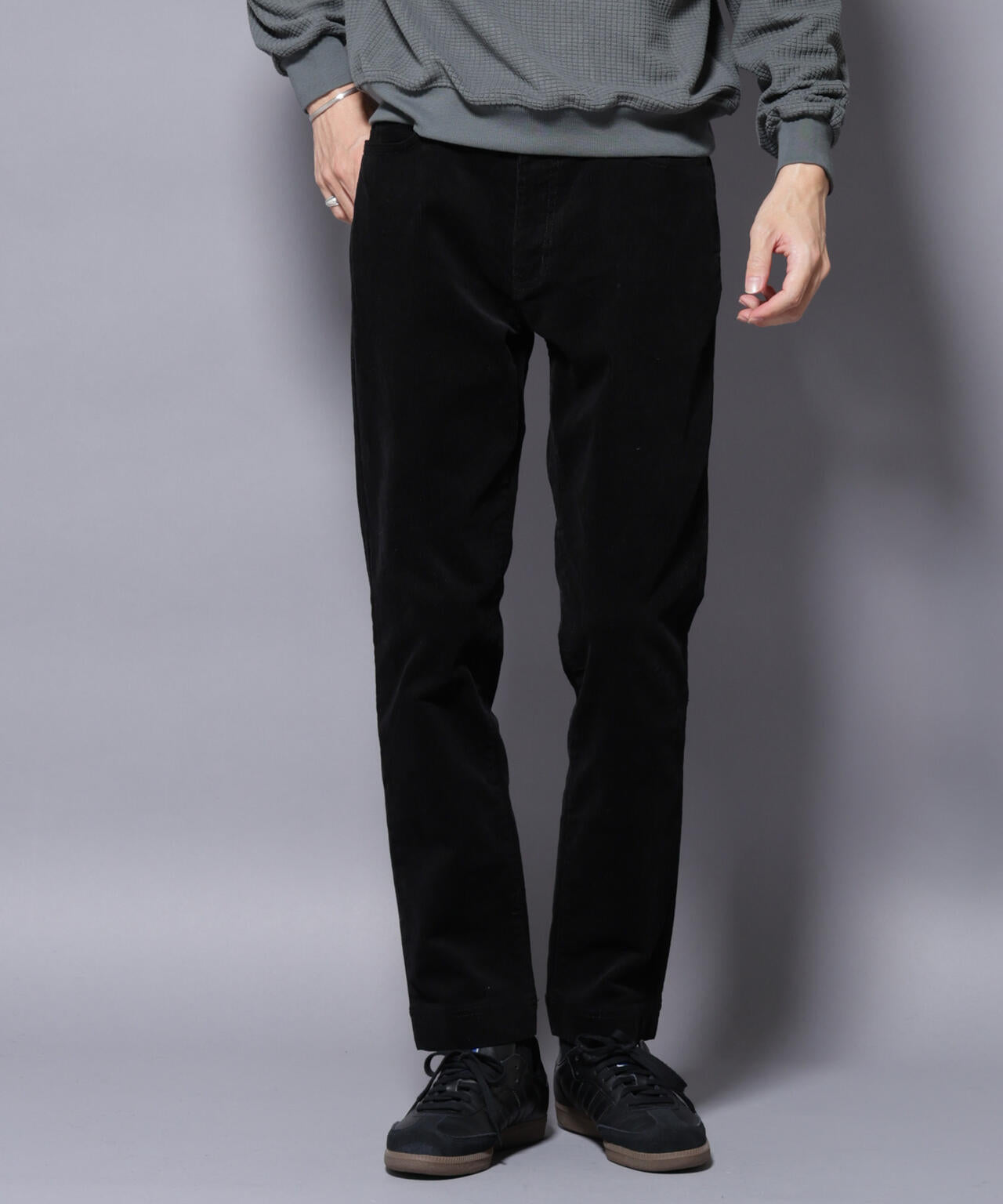細目のシルエットにテーパードが効いたコーデュロイパンツ