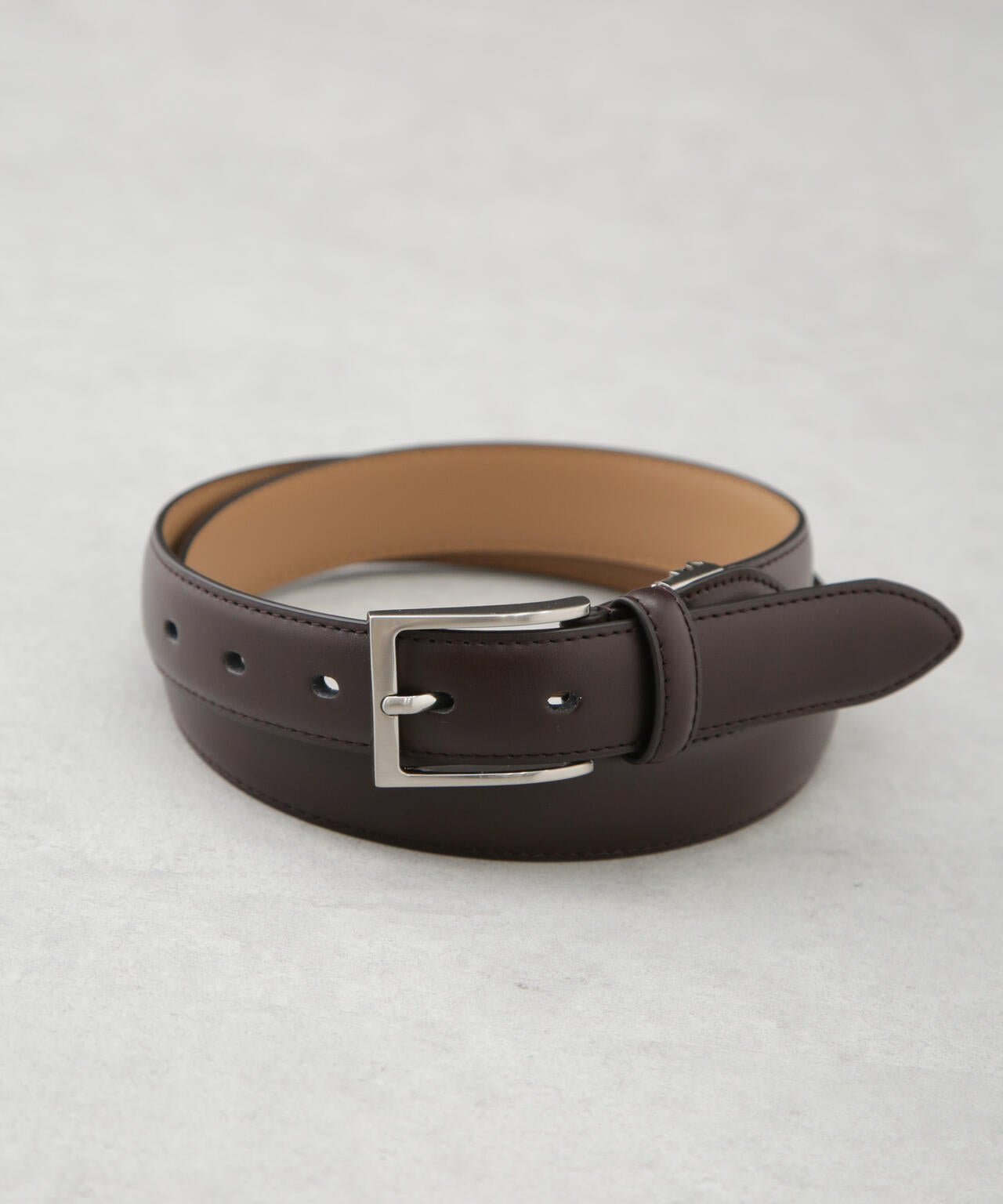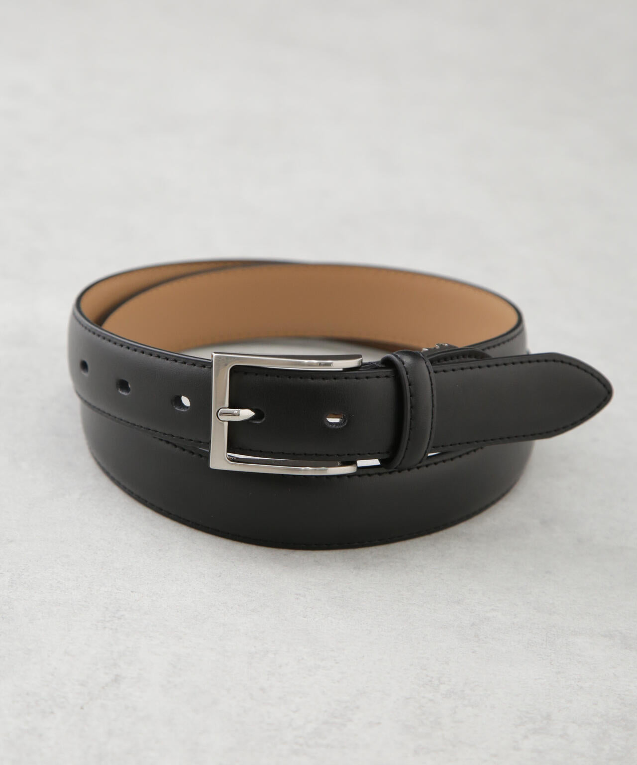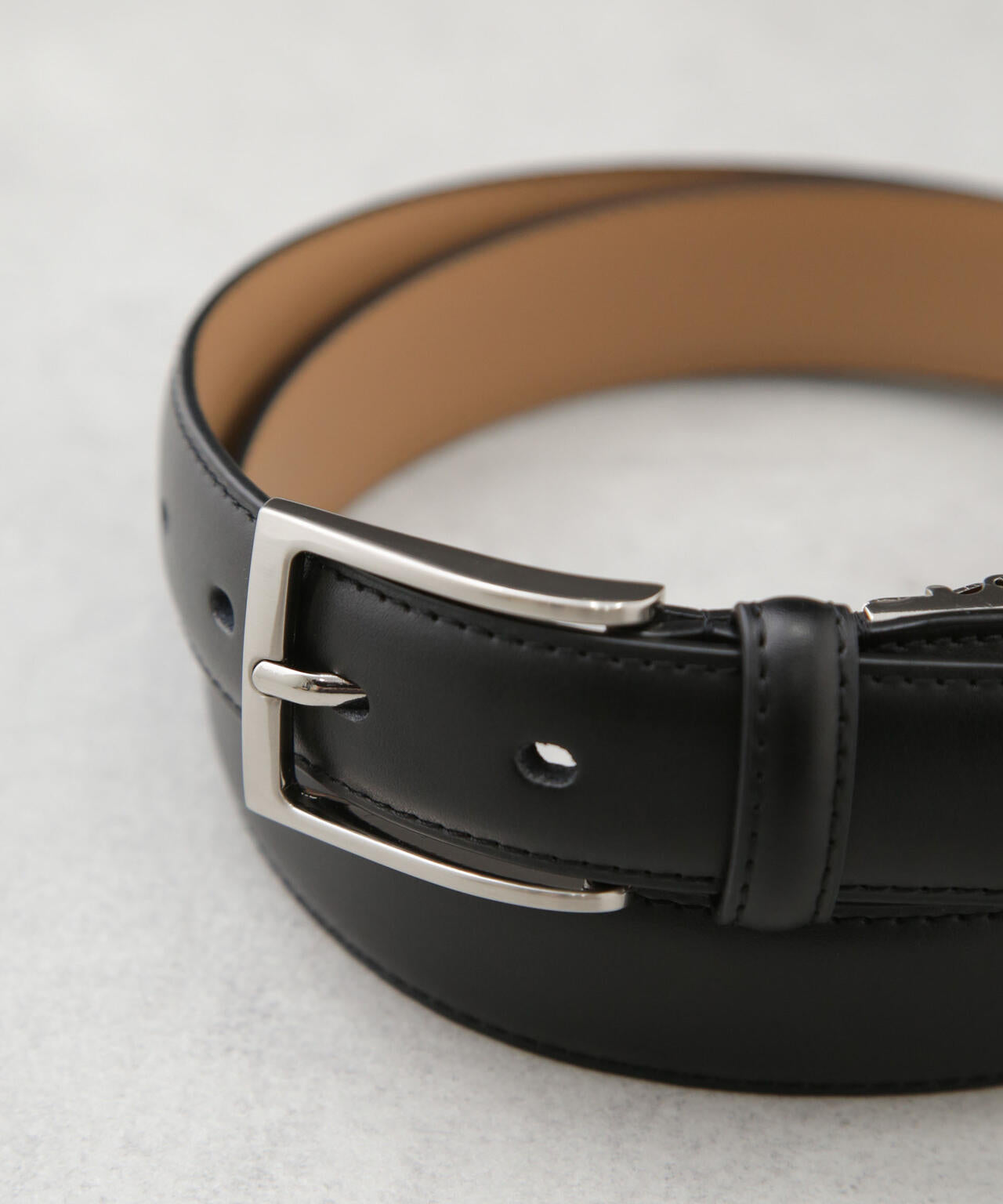 光沢感のあるスプリットレザーを使用した汎用性の高いベルト。定番幅の3cmと定番的な盛り上げの加工に加え、同色ステッチを施した飽きのこないデザイン。幅広いシーンに活躍する1本です。