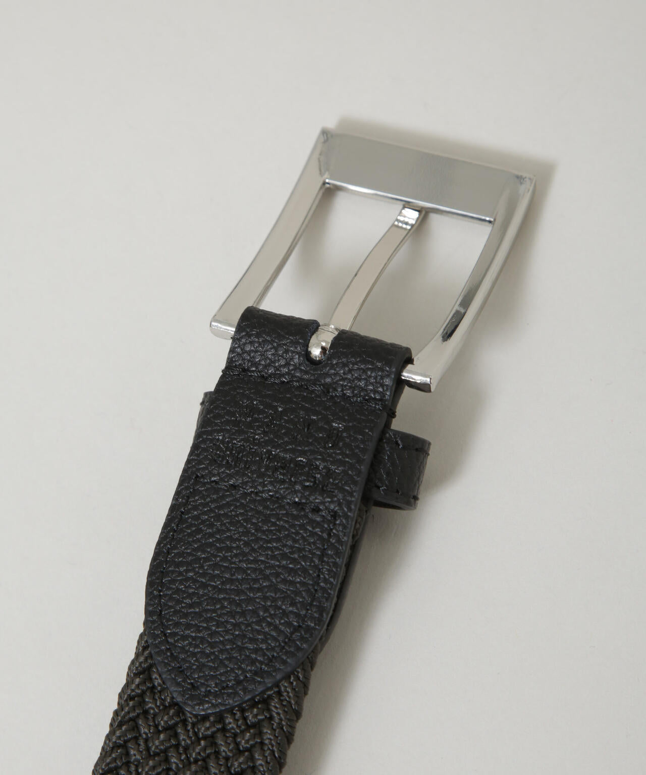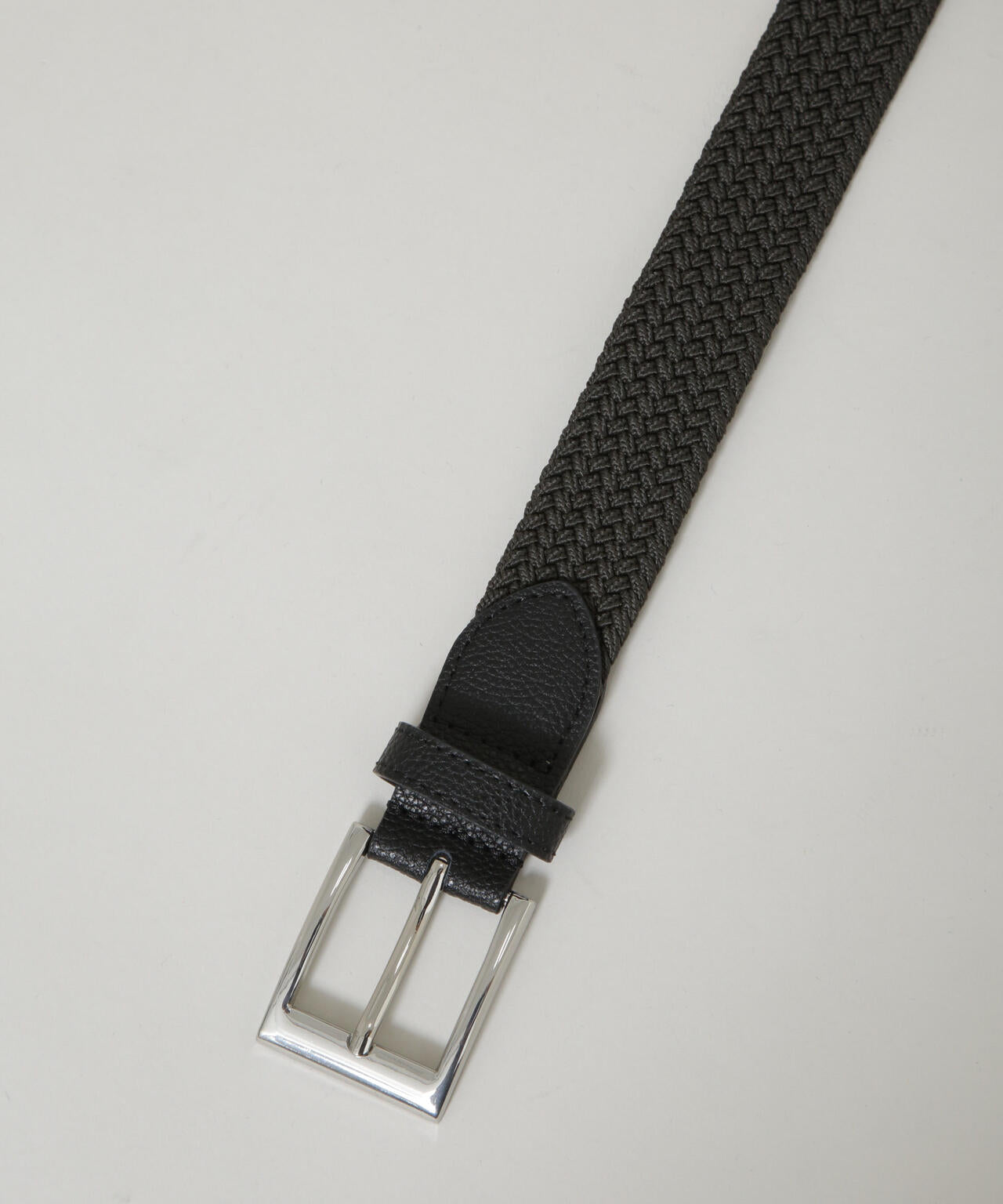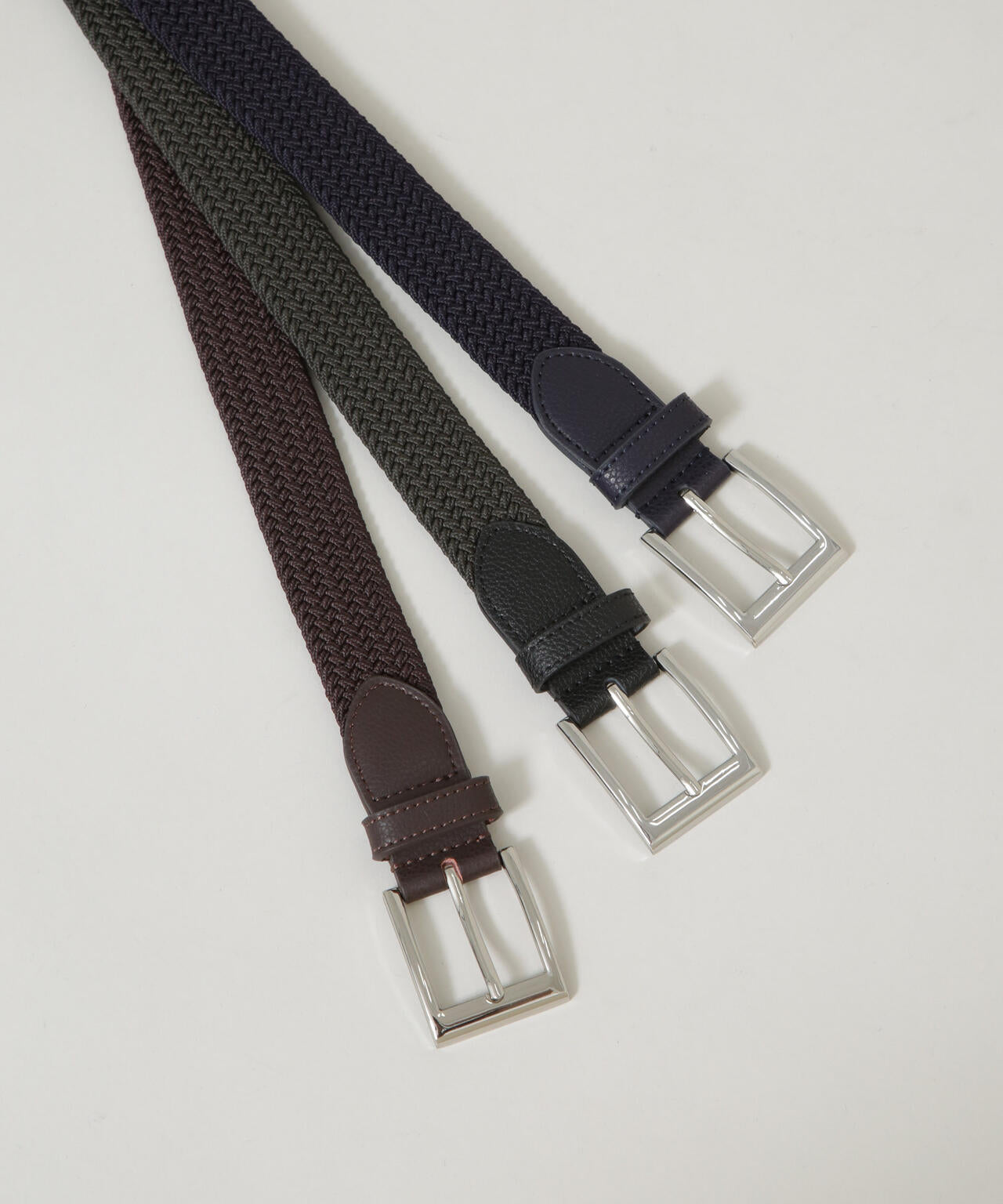 伸縮性に優れたゴムメッシュ素材を使用した、ソリッドカラーのシンプルベルト。ネイビー、Dブラウン、ブラックの落ち着いたカラー展開でONOFF問わず活躍します。