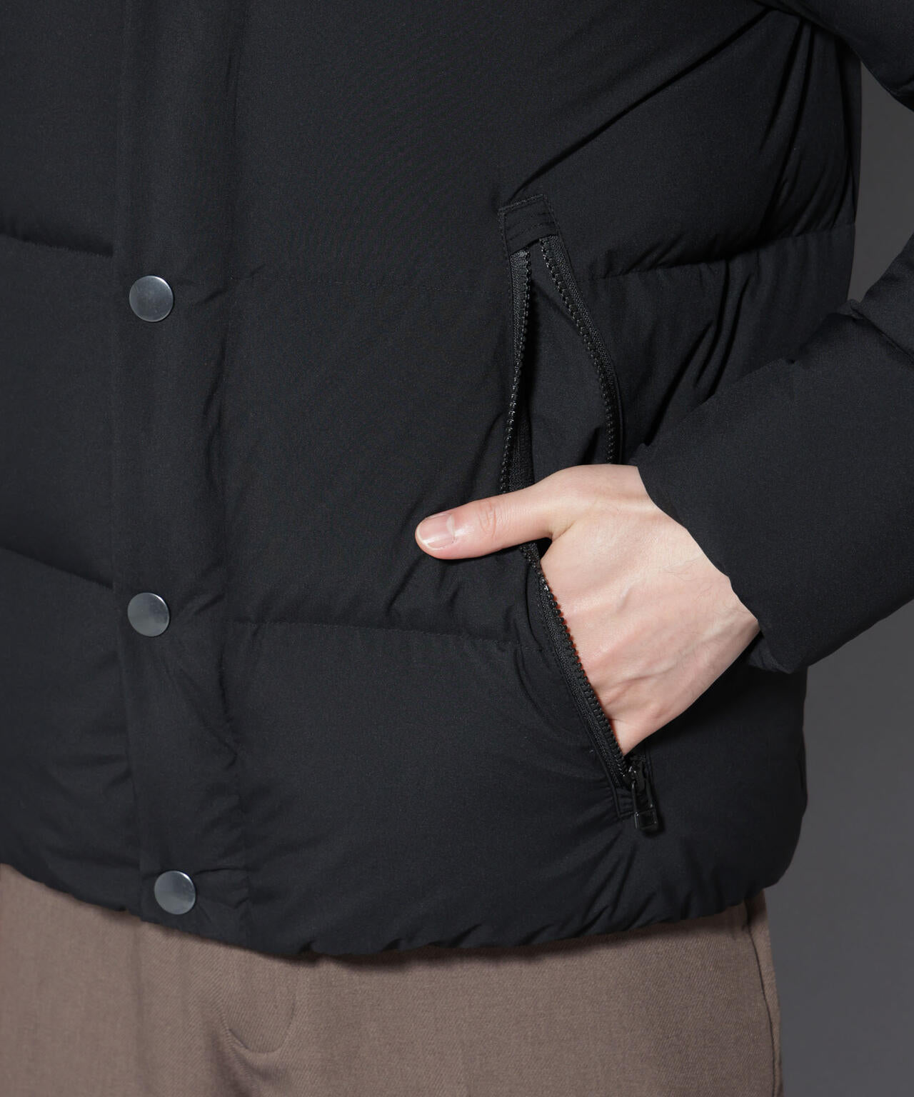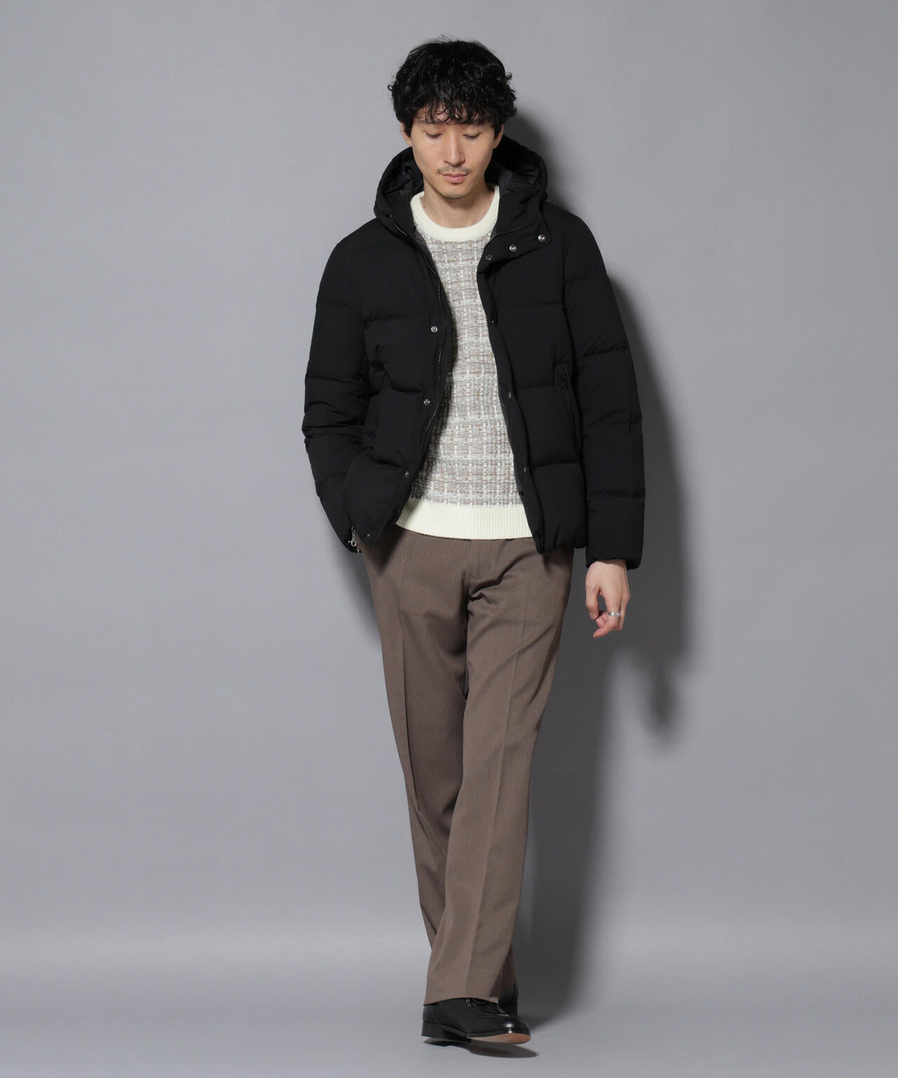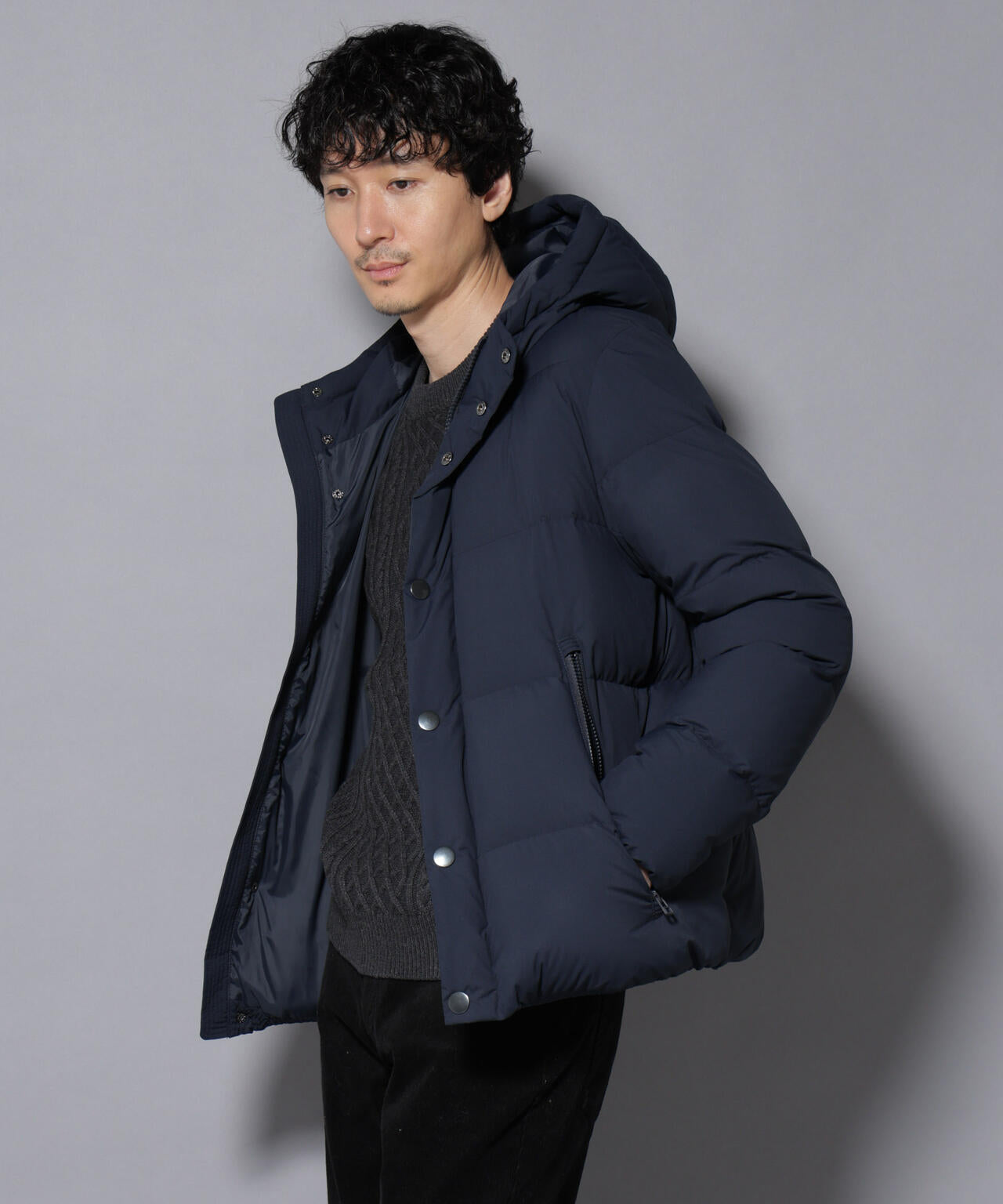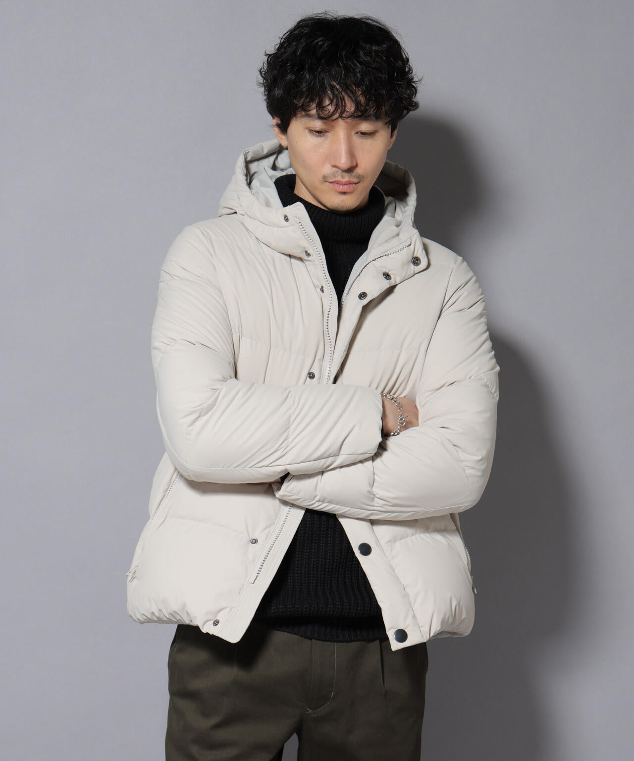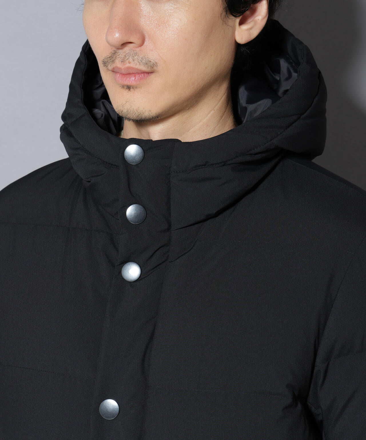 高い保温性と撥水機能を備えた、ボリューム感のあるフーテッドダウン。すっきりとした細身なボディは洗練されたデザインで、一枚でスタイリッシュに決まる一着です。