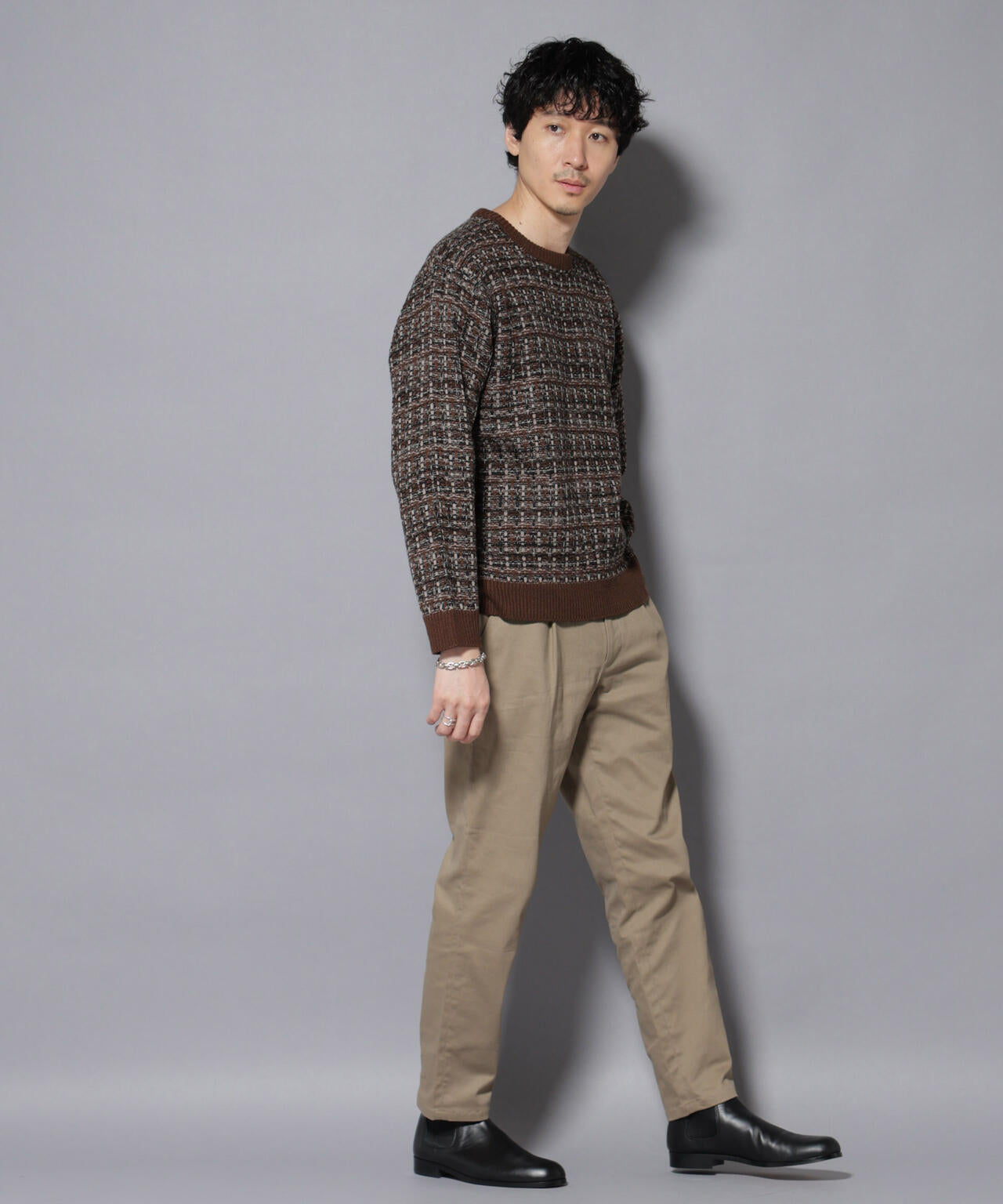 ・様々な混率と番手違いの糸で編みたてることで、表面感を演出