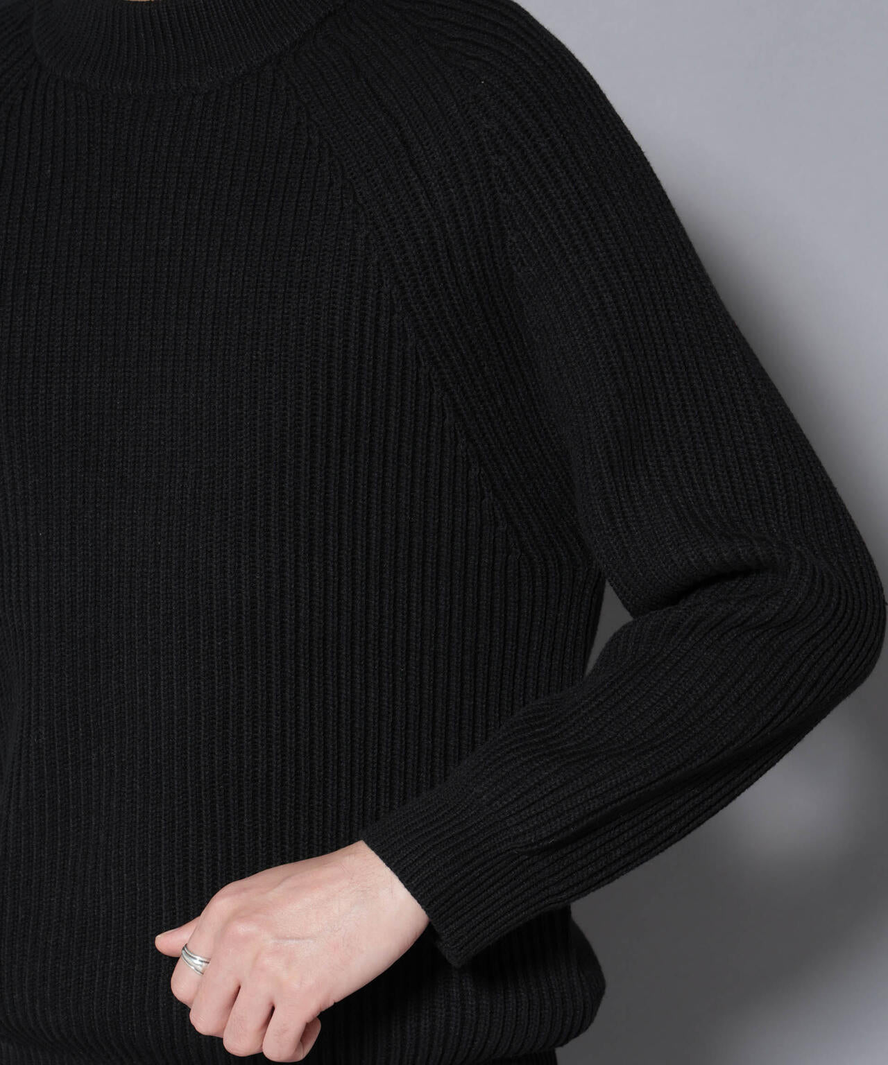 今期新色のグレーがおすすめのモックネックニット。手洗い可能なのがうれしいポイント。