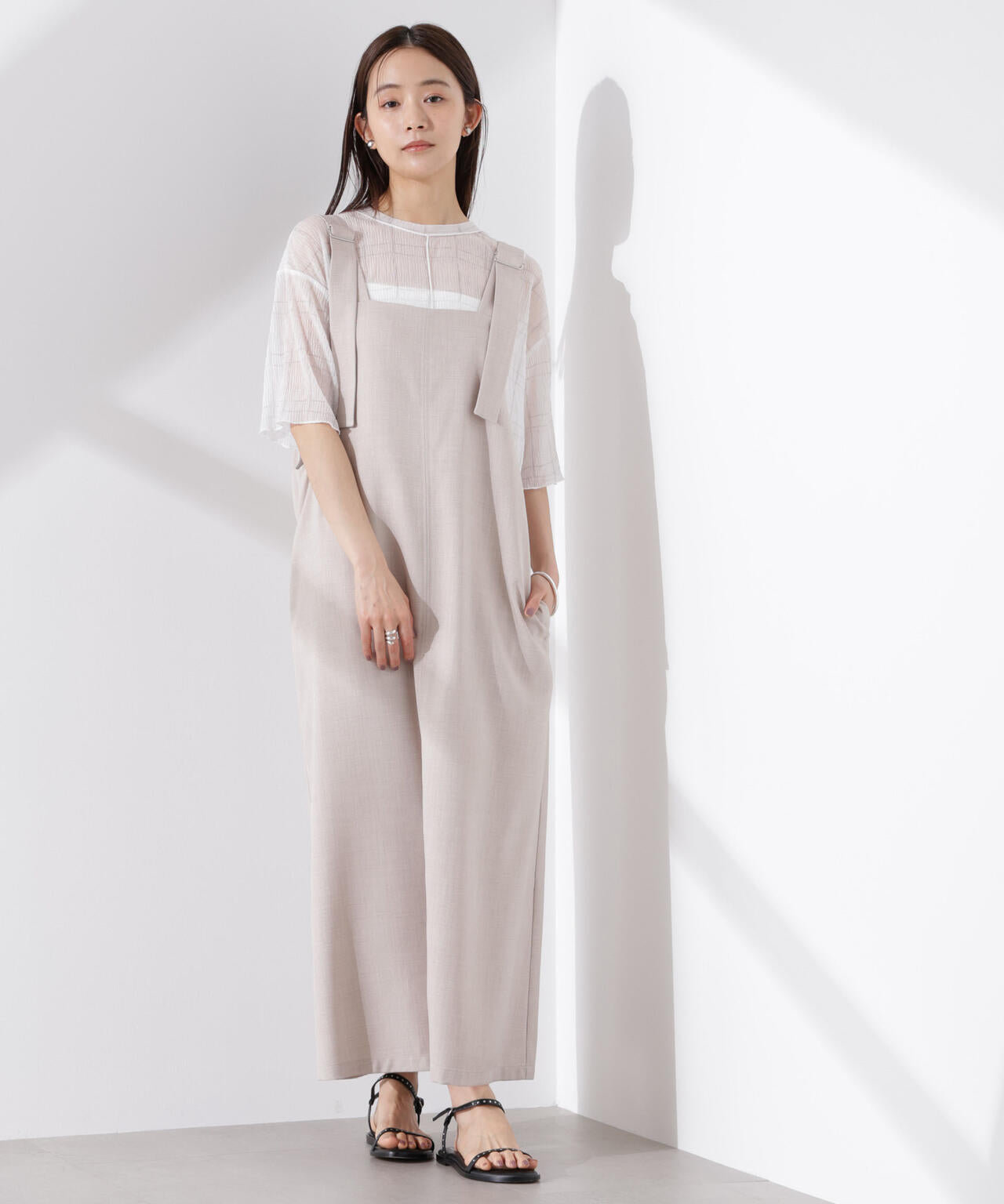 表情の異なる2タイプのデザインを楽しめるサロペットワンピース。サロペットとジャンパースカートの前後どちらの仕様でも着回せて、合わせるインナーやシューズ、アウターによってシーンレスで活躍してくれる優秀アイテムです。