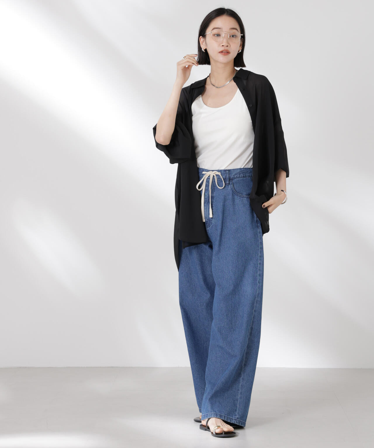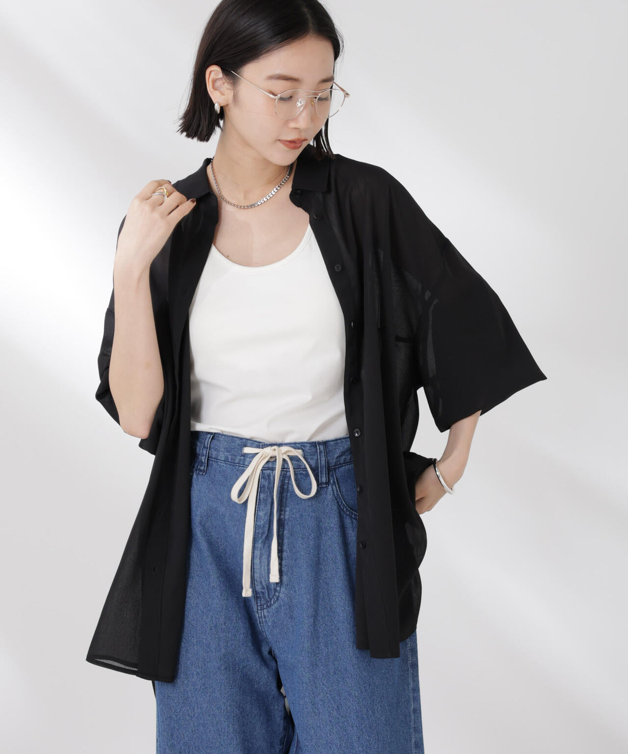 程良いシアー感とゆるっとしたオーバーサイズが抜け感たっぷりのシアーシャツ。前を閉じてフロントのみ裾インしたり、前を開けて羽織としても活躍する万能アイテムです。