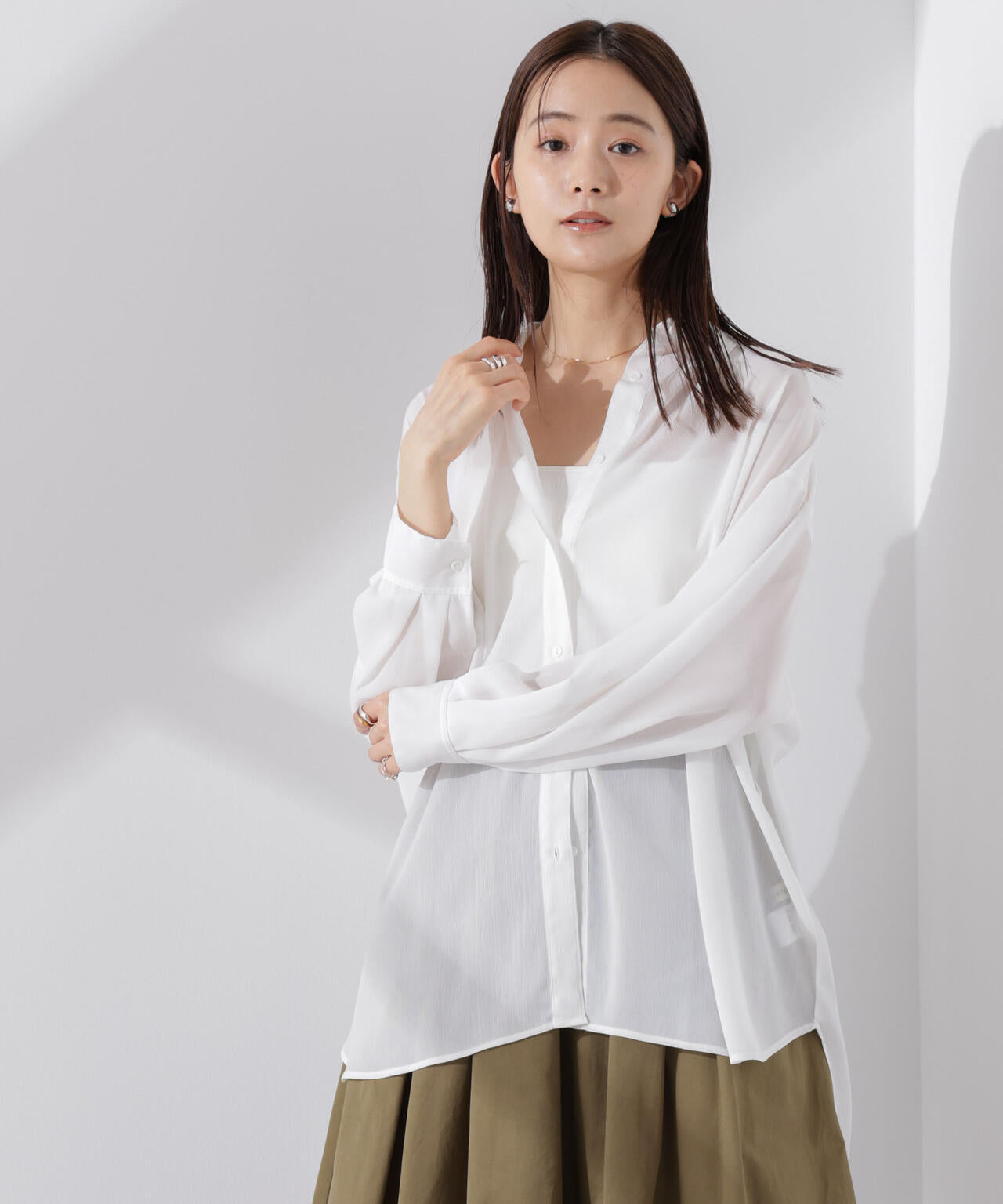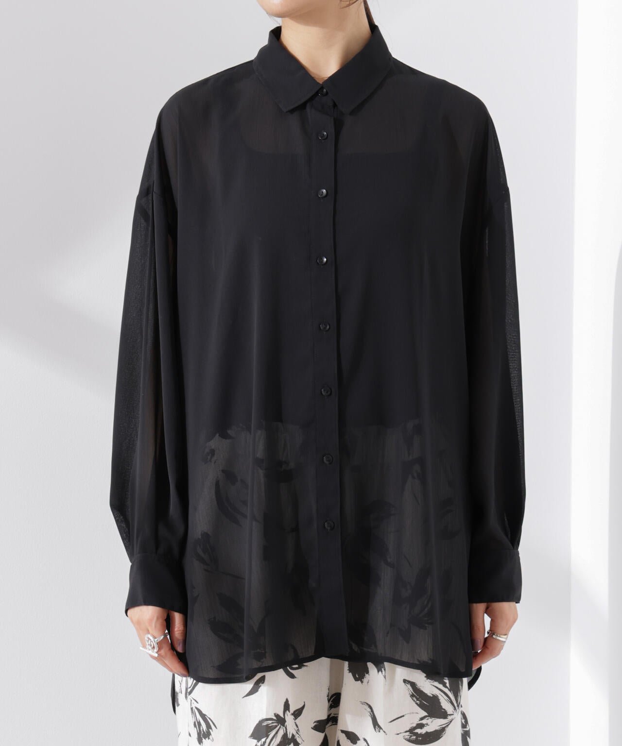ゆるっとしたオーバーサイズが抜け感たっぷりのシアーシャツ