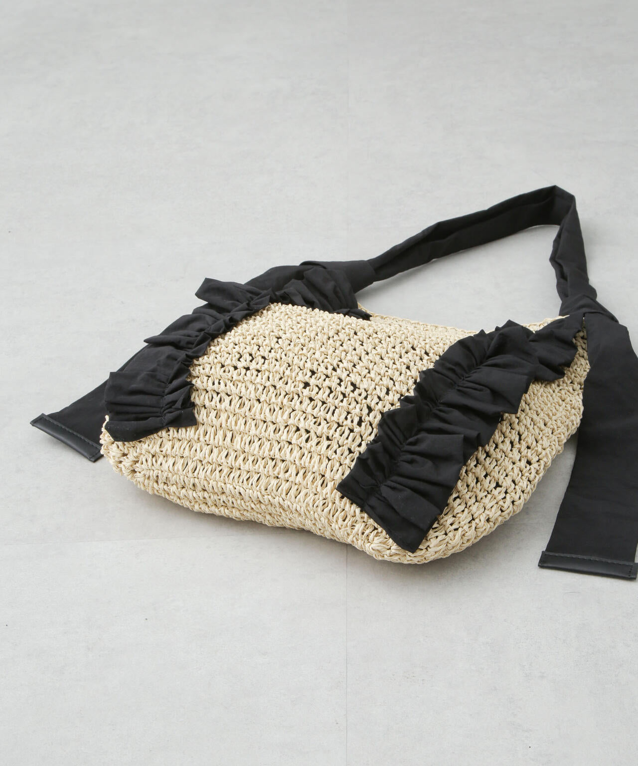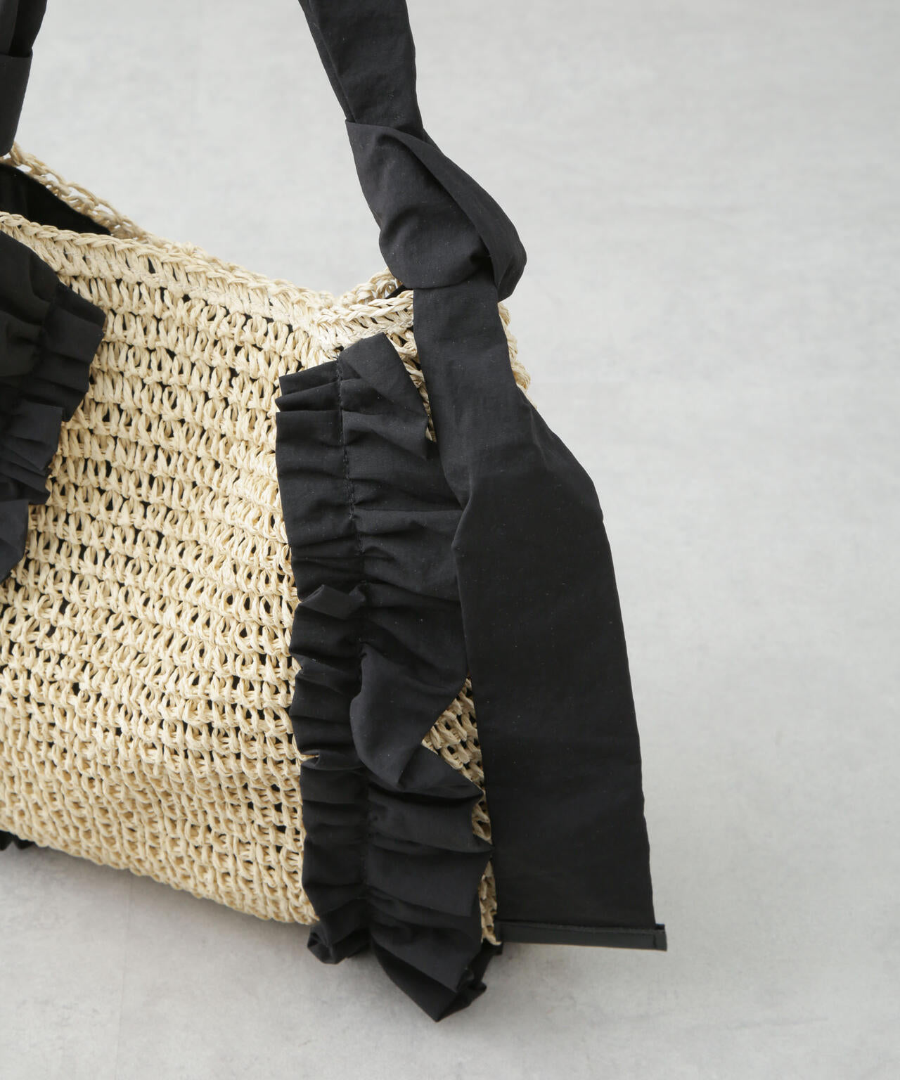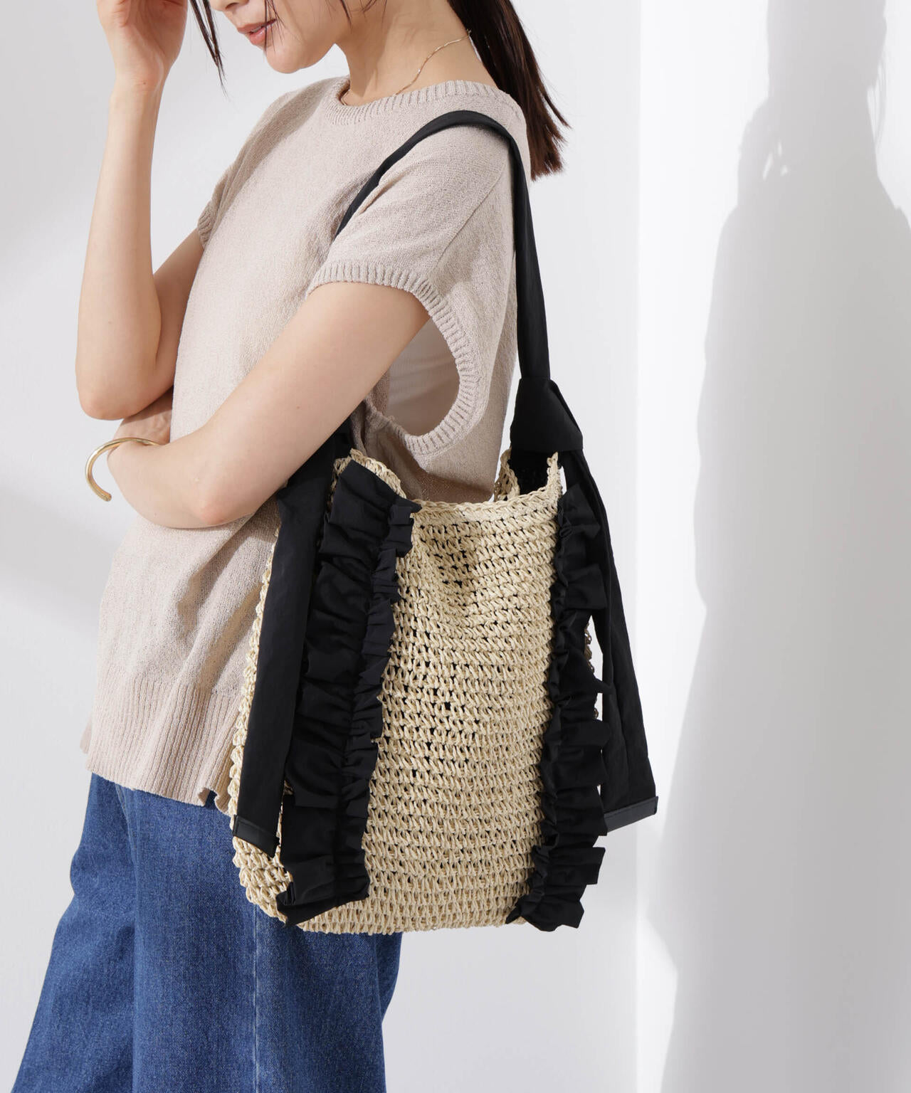 大ぶりなフリルが大人可愛いペーパー編みバッグ