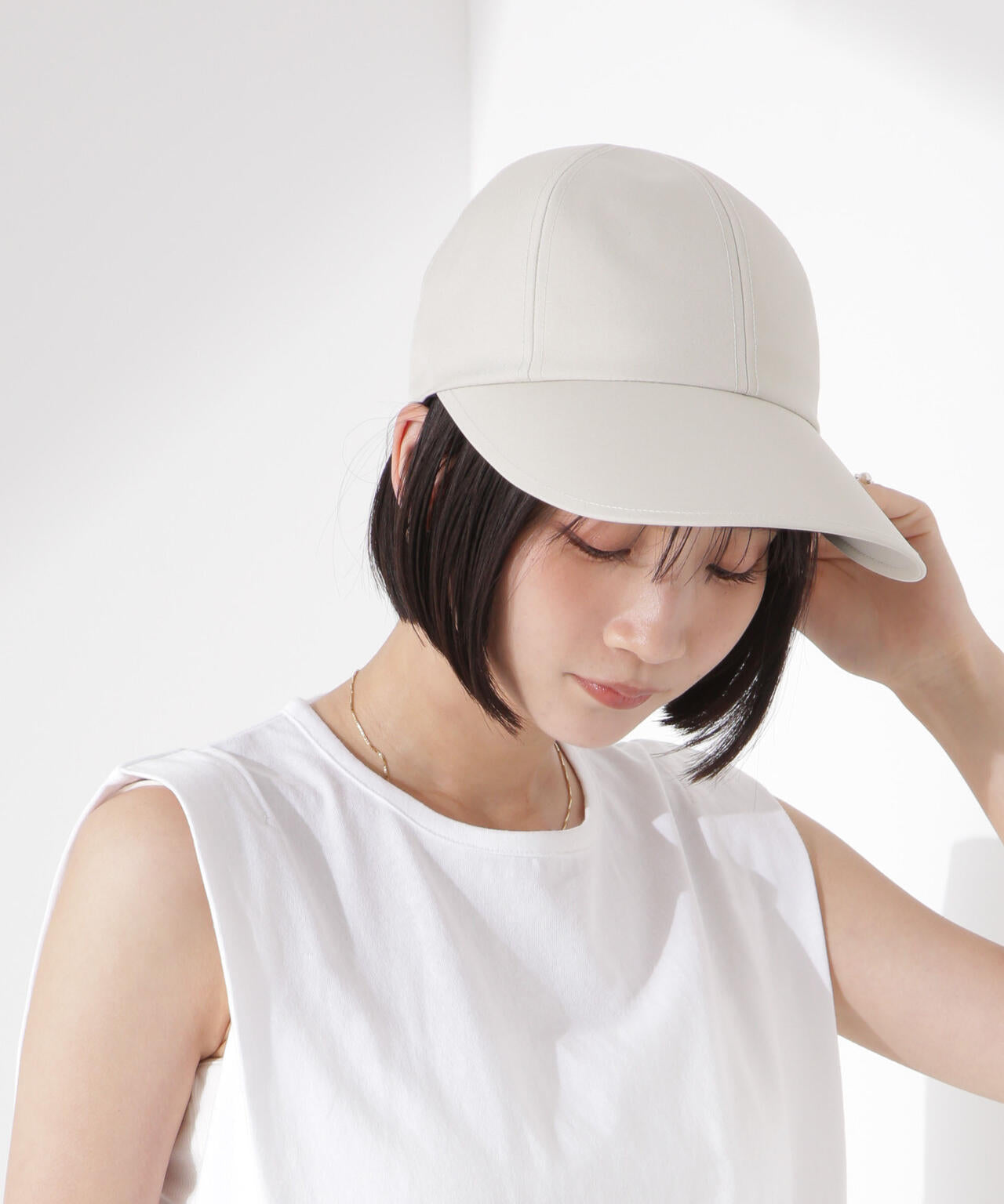 カジュアル過ぎず女性らしいスタイリングにも合わせやすいキャップ。通常のキャップよりもつばが長くユニークで目を引くデザインが特徴。つば部分は少し長めの設計で程よく顔が隠れ日焼け対策にも重宝するアイテムです。
