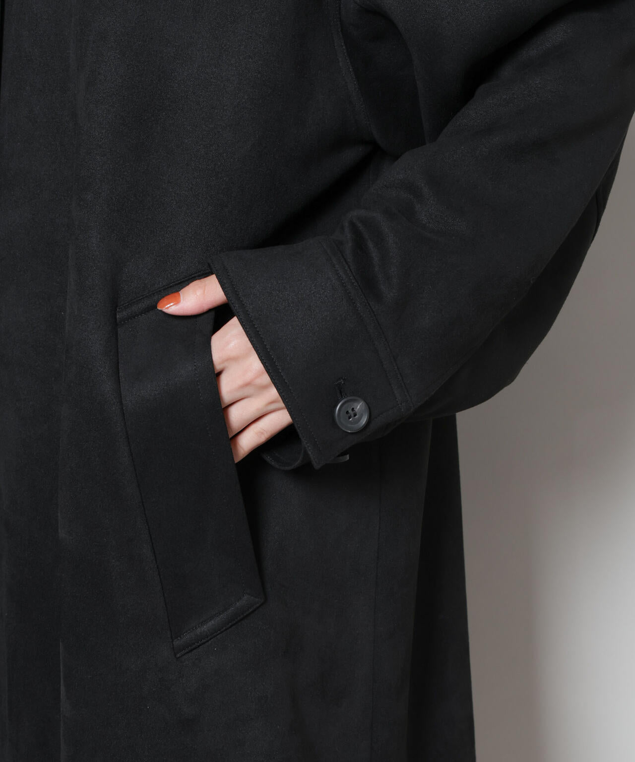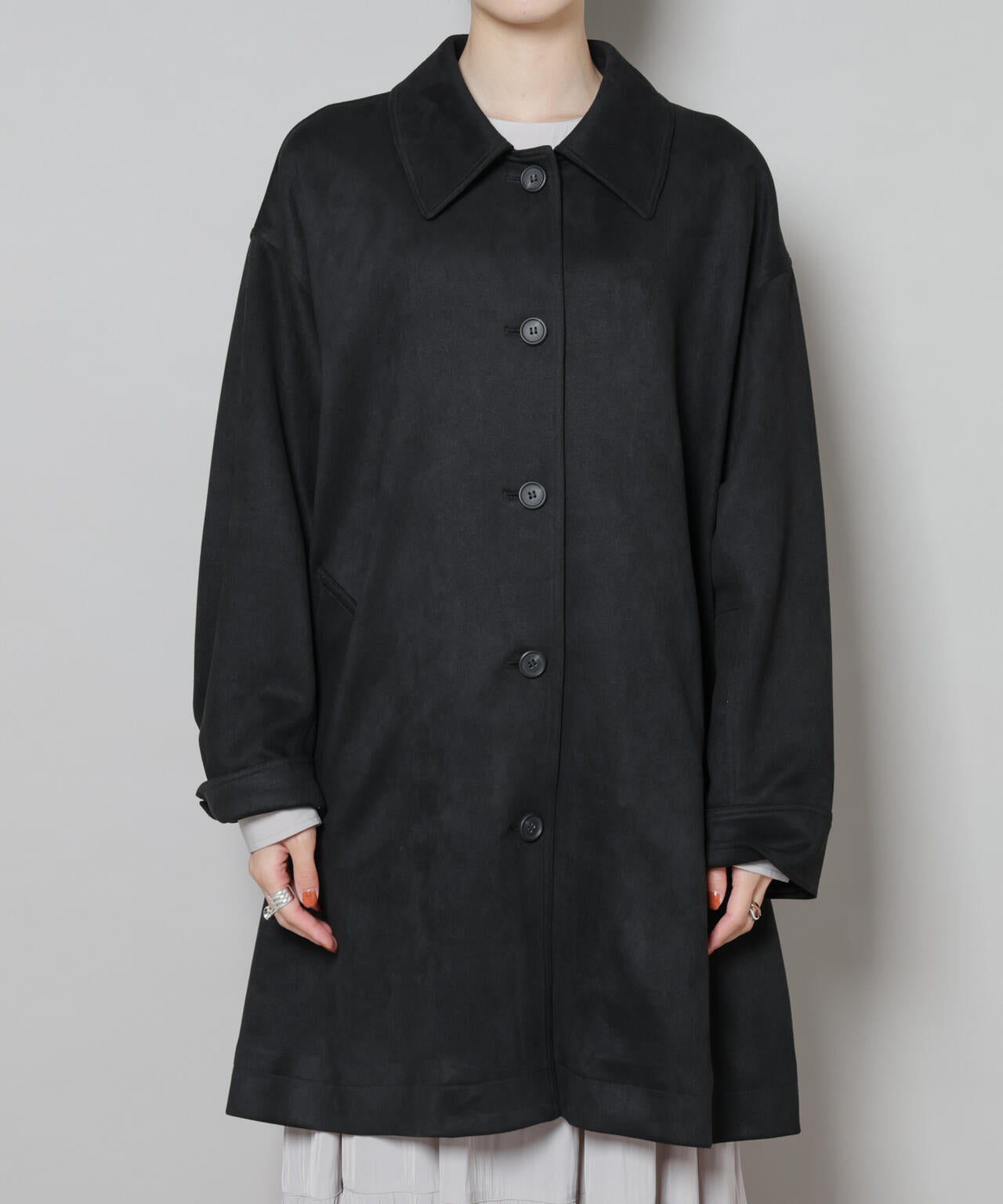 柔らかい肌触りのフェイクスエードを使用したミドル丈コート