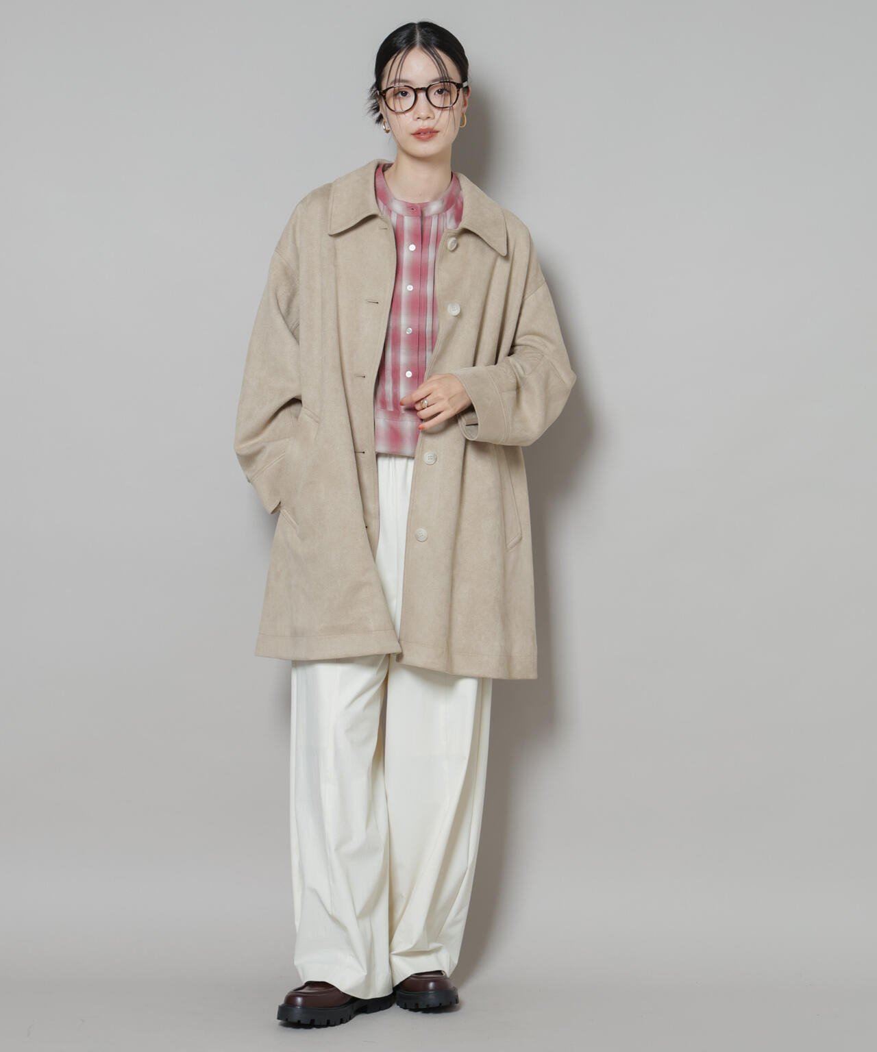 ・シーズンムード漂うフェイクスエード仕立てのミドル丈コート